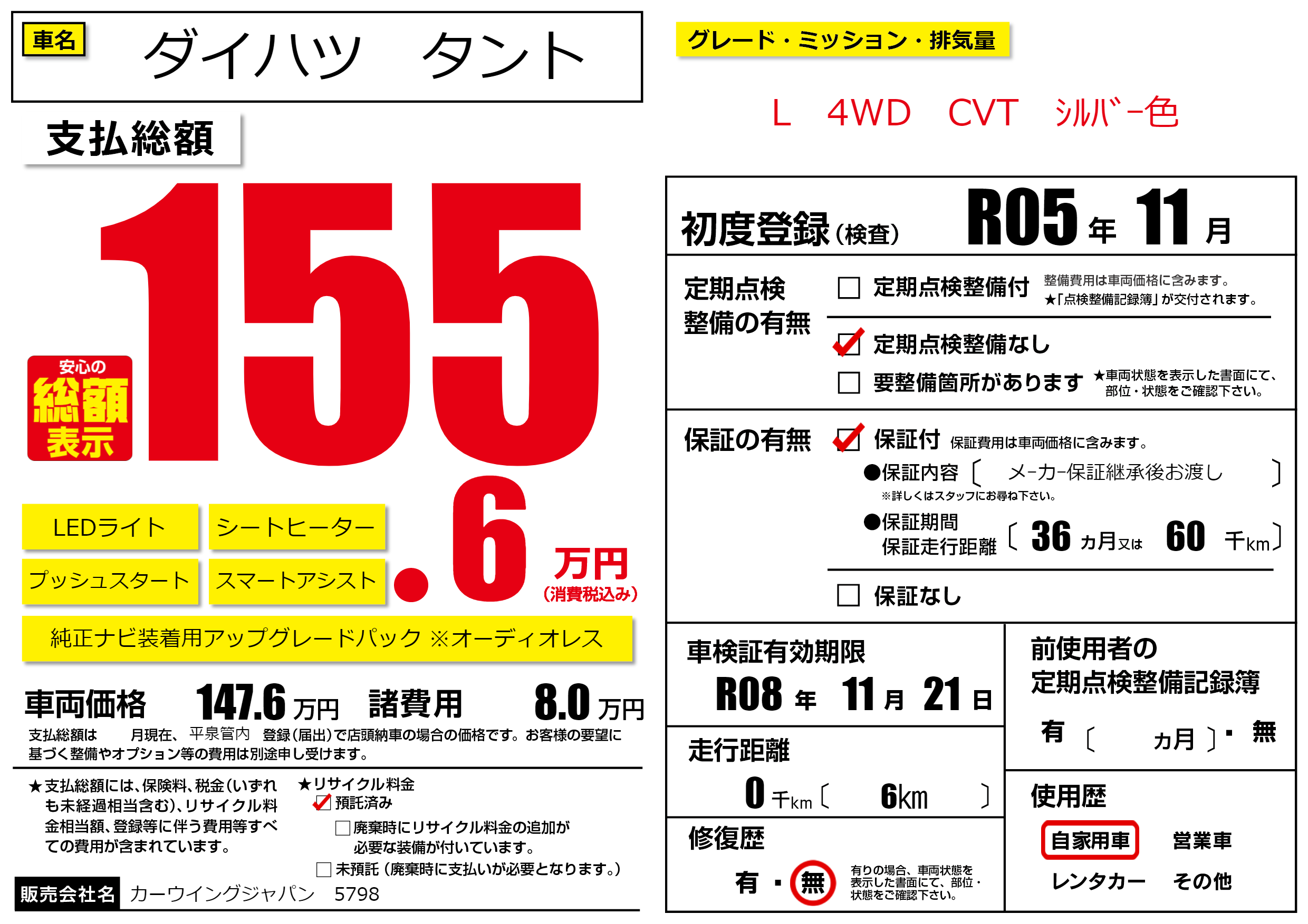 なし | 車検制限 | R08年11月21月 |