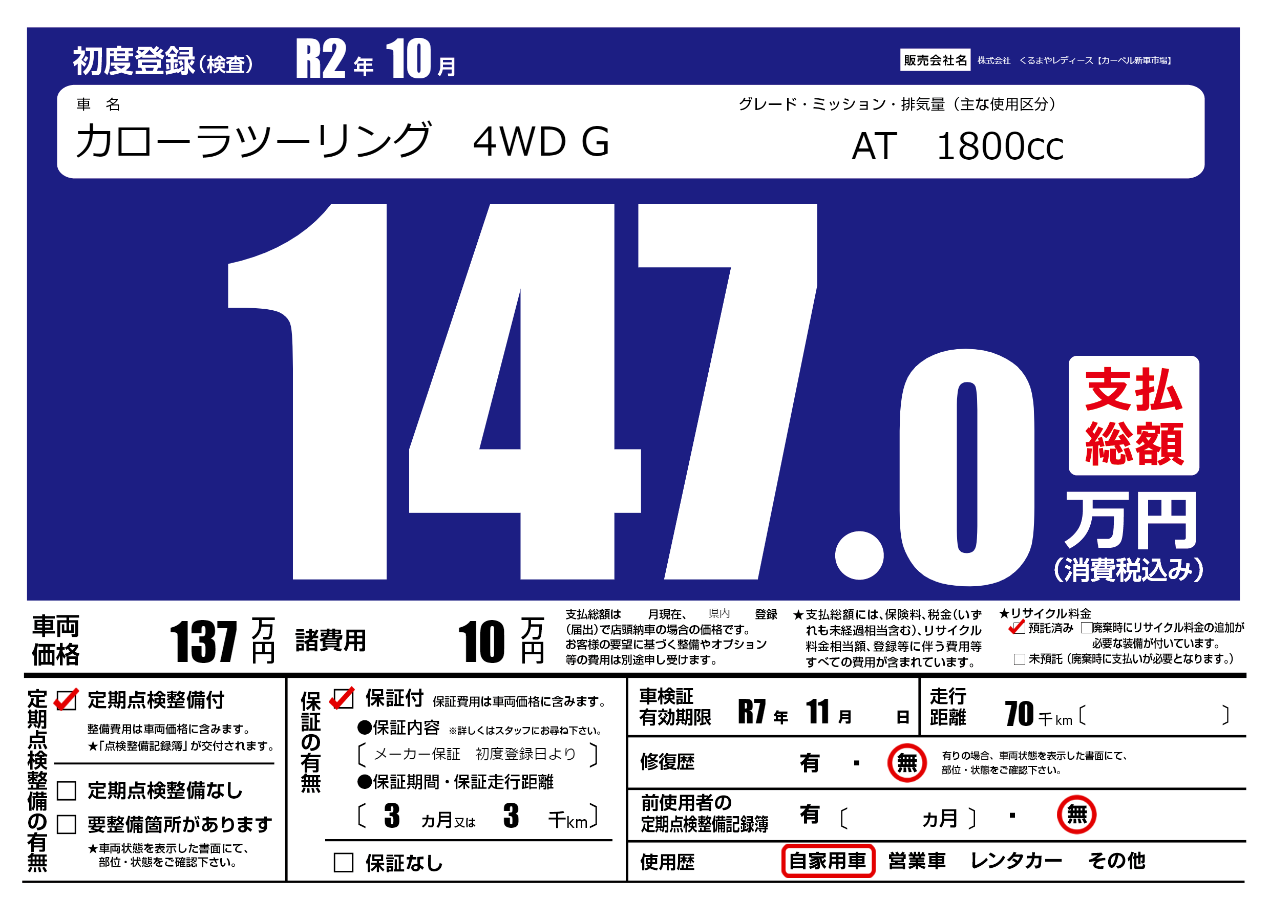 株式会社 くるまやレディース【カーベル新車市場】の展示車
