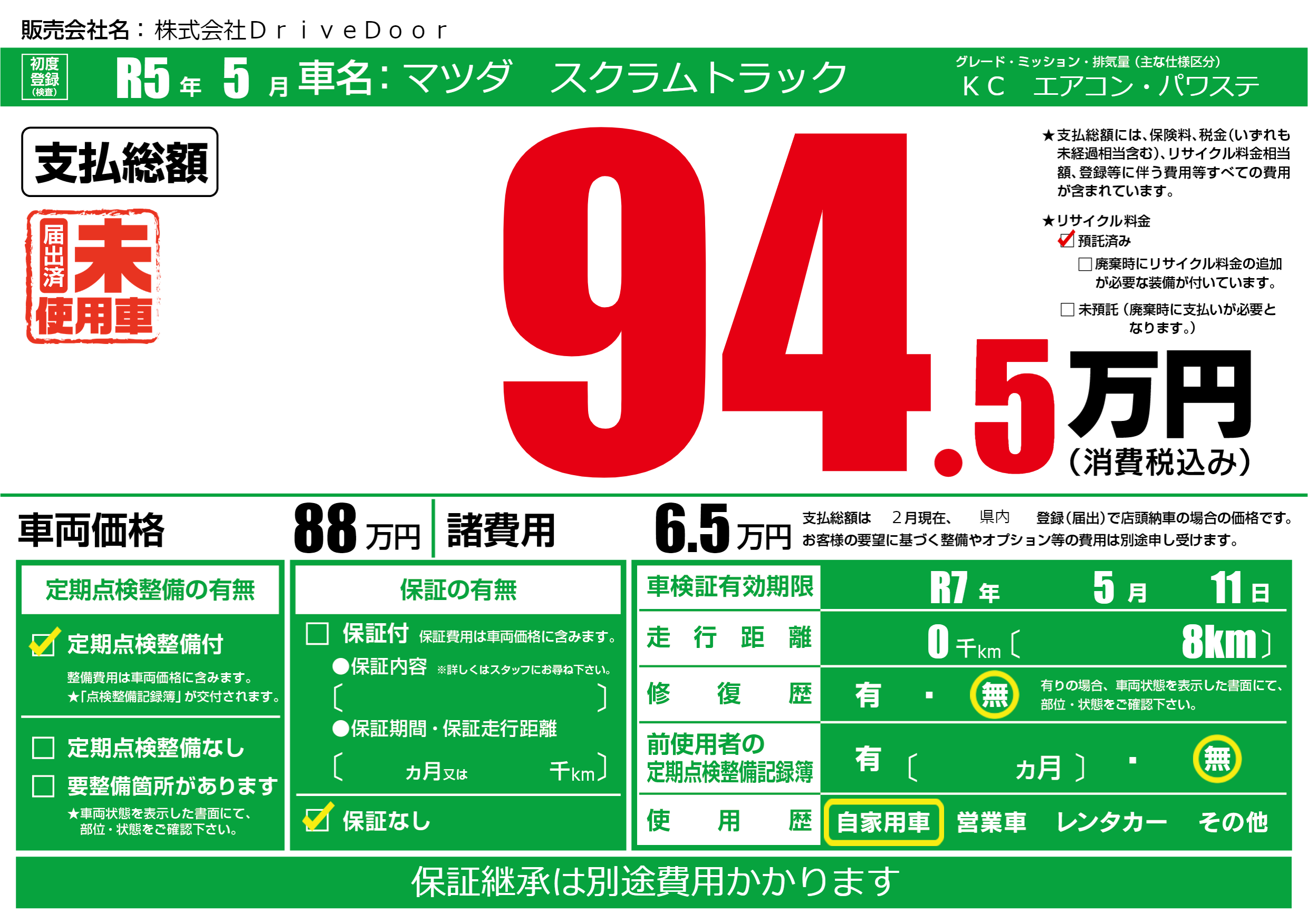 | 走行キロ | - | 初年度登録 | R5年5月 |
