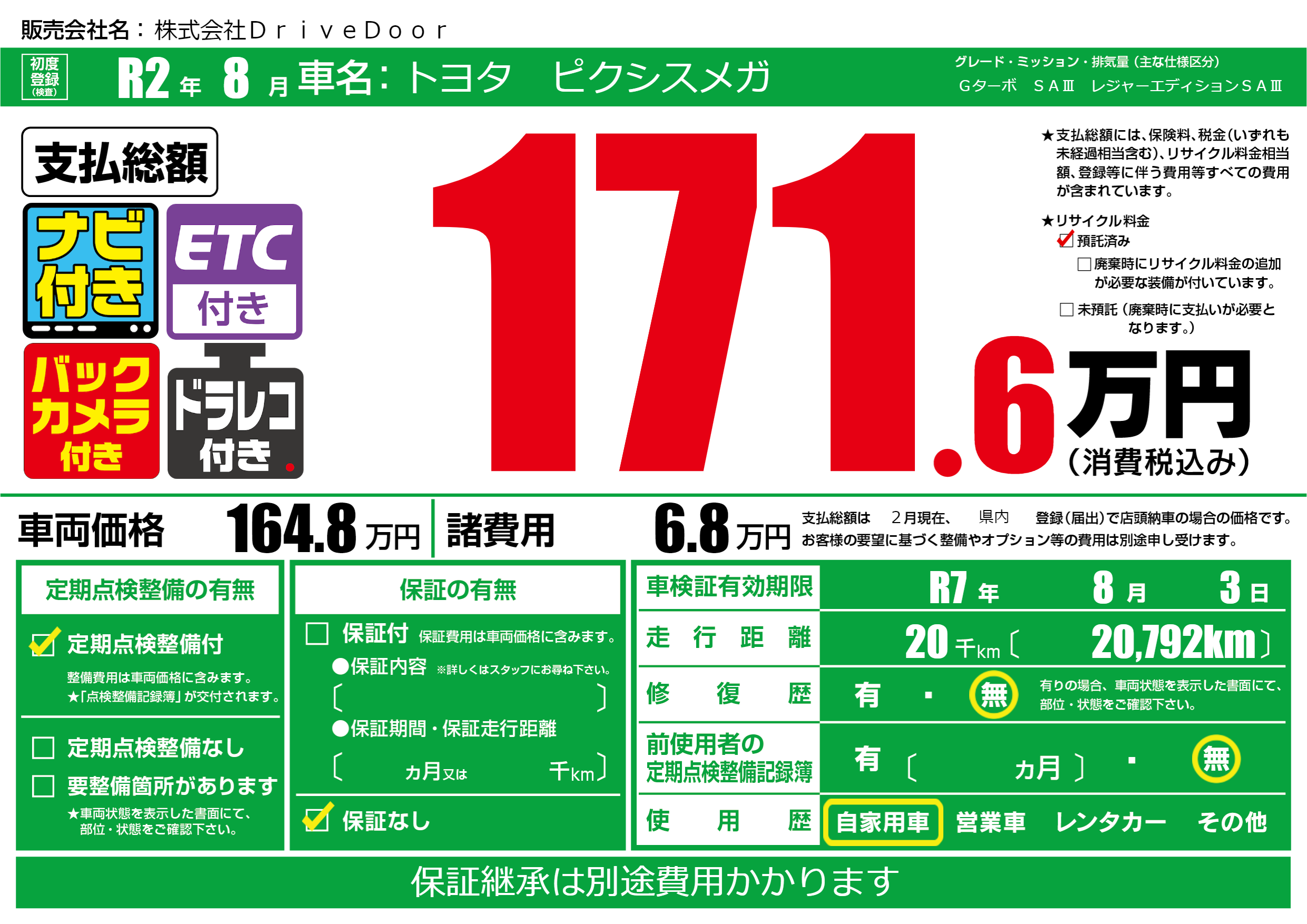 なし | 車検制限 | R7年8月3月 |