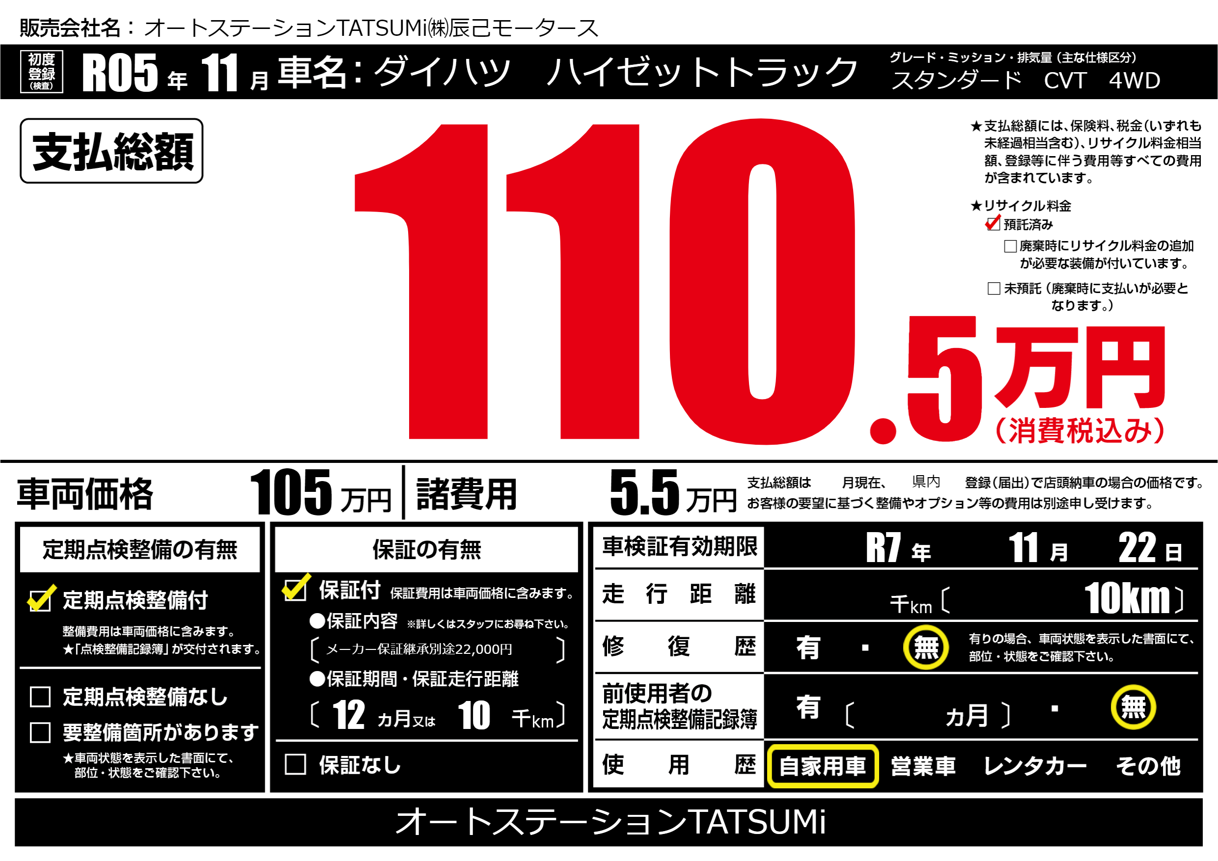 なし | 車検制限 | R7年11月22月 |