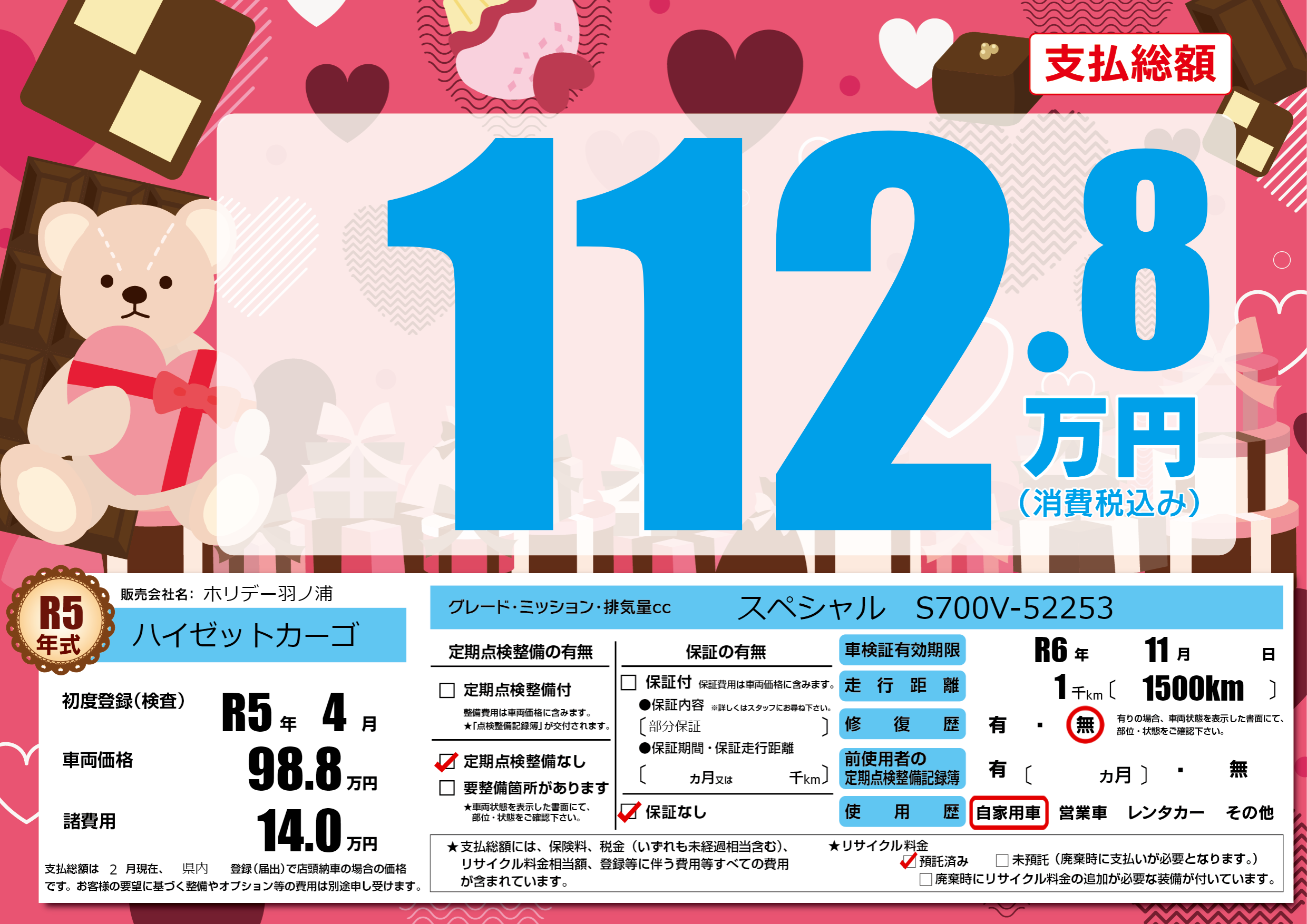 | 車名 | ハイゼットカーゴ | グレード ミッション 排気量 |