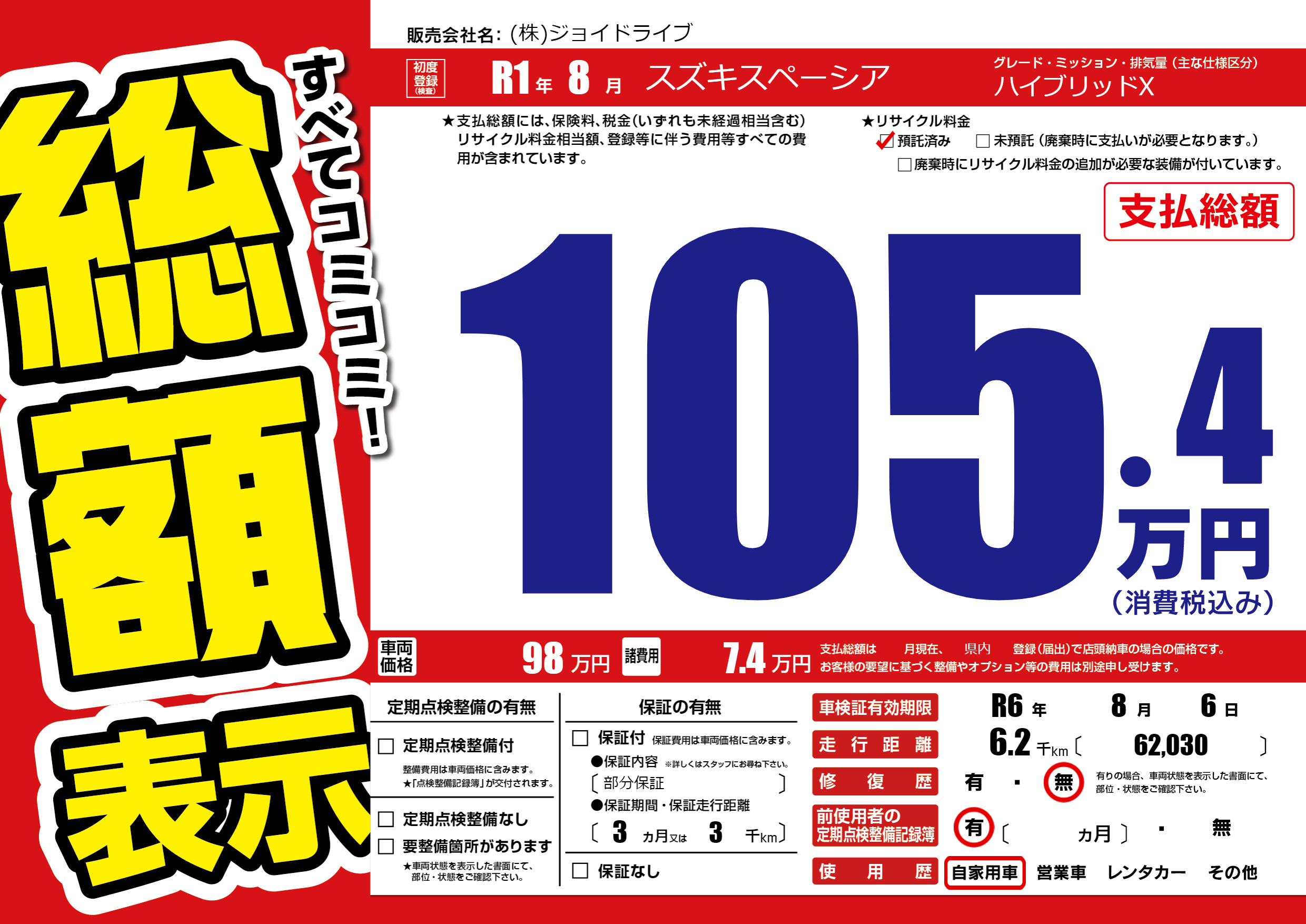 なし | 車検制限 | R6年8月6月 |