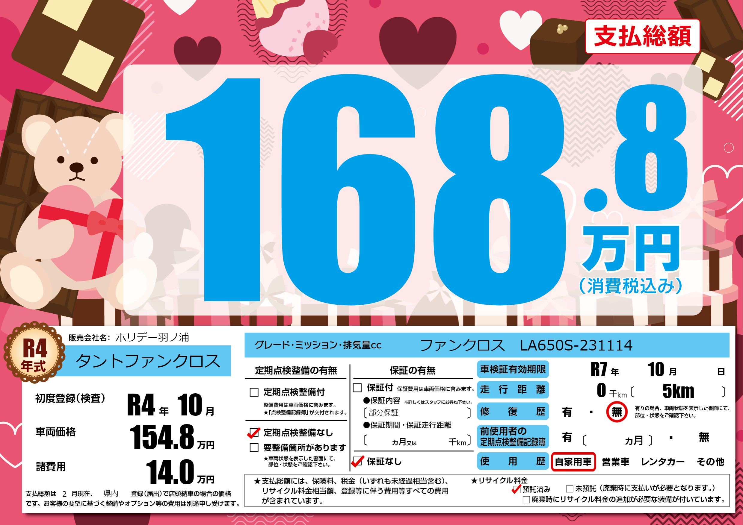 | 車名 | タントファンクロス | グレード ミッション 排気量 |