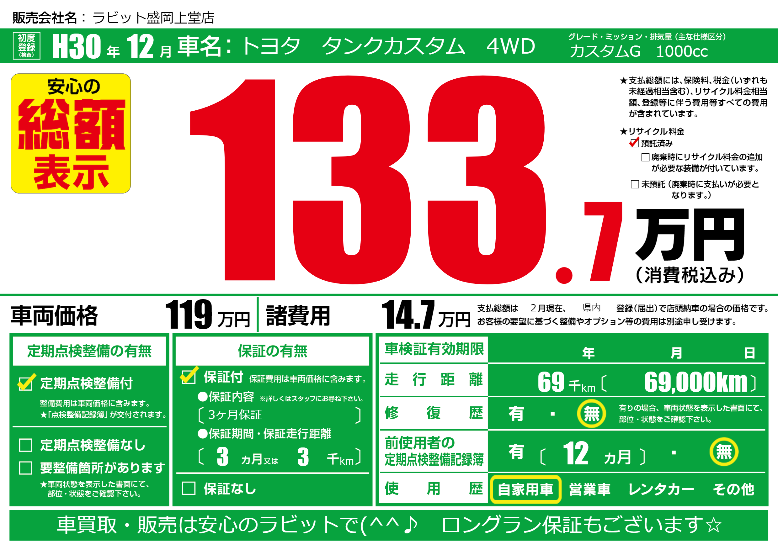 保証付き 保証内容(3ヶ月保証) 3ヶ月または(3)千kmまで |