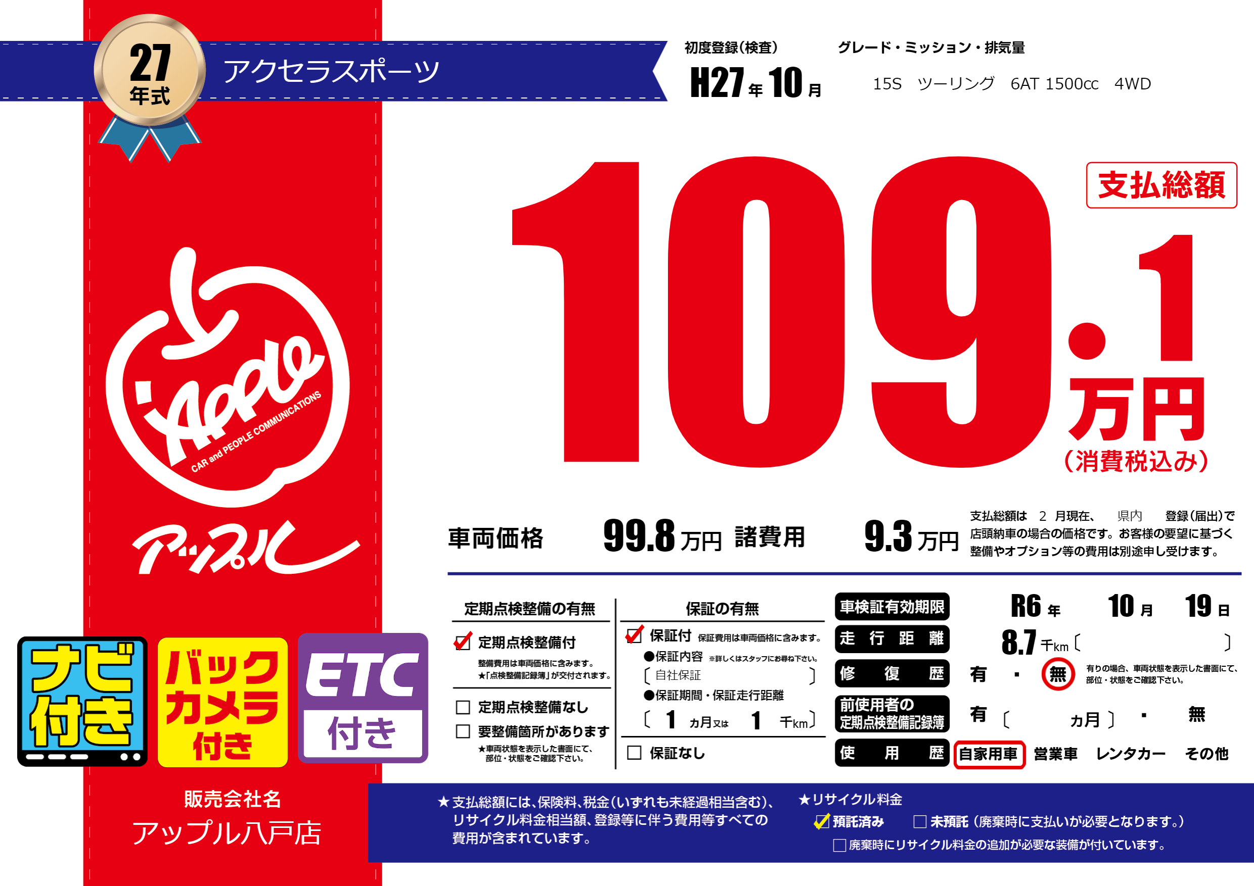 | 車名 | アクセラスポーツ | グレード ミッション 排気量 |