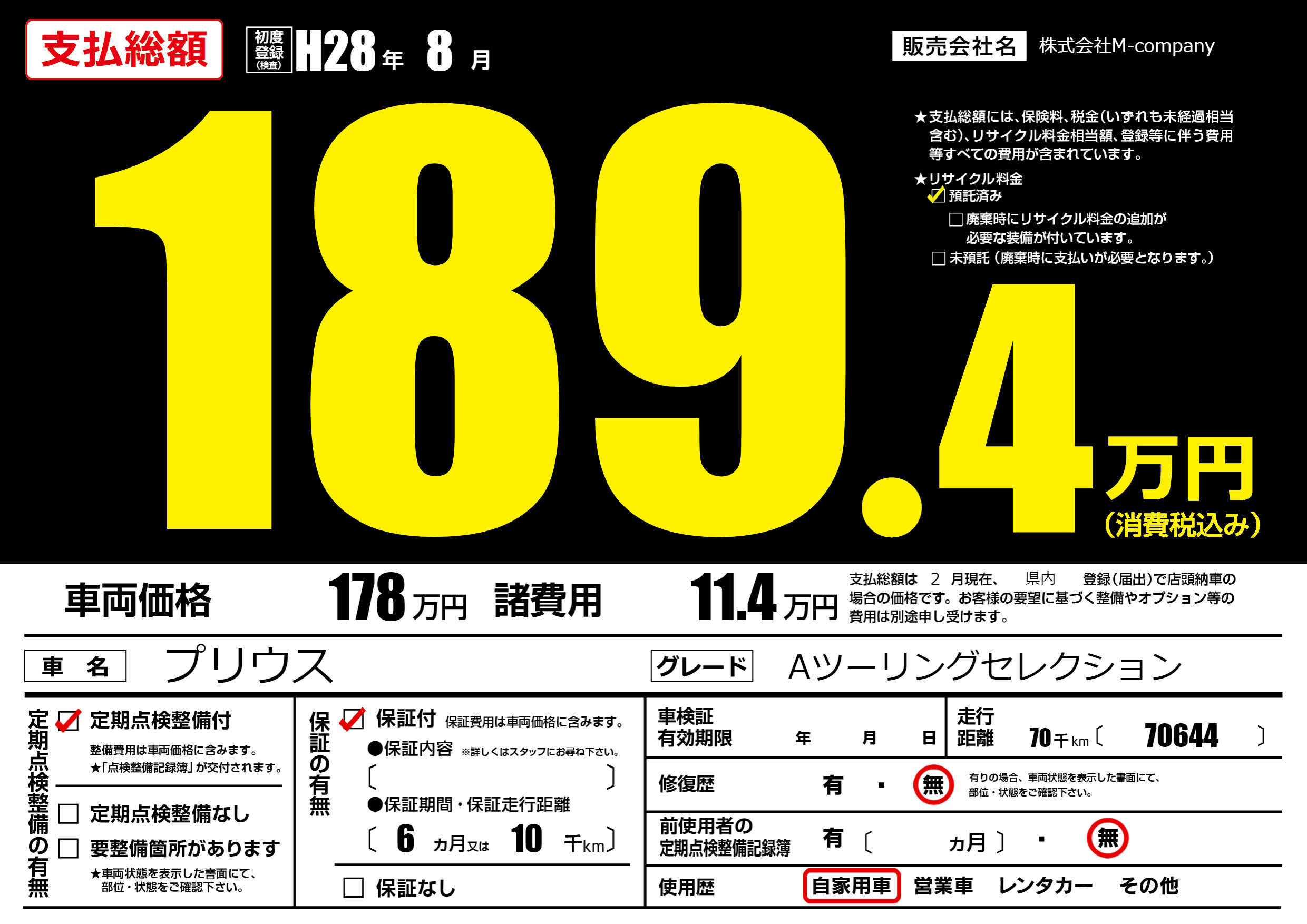 | 定期点検整備 | 定期点検整備あり | ||