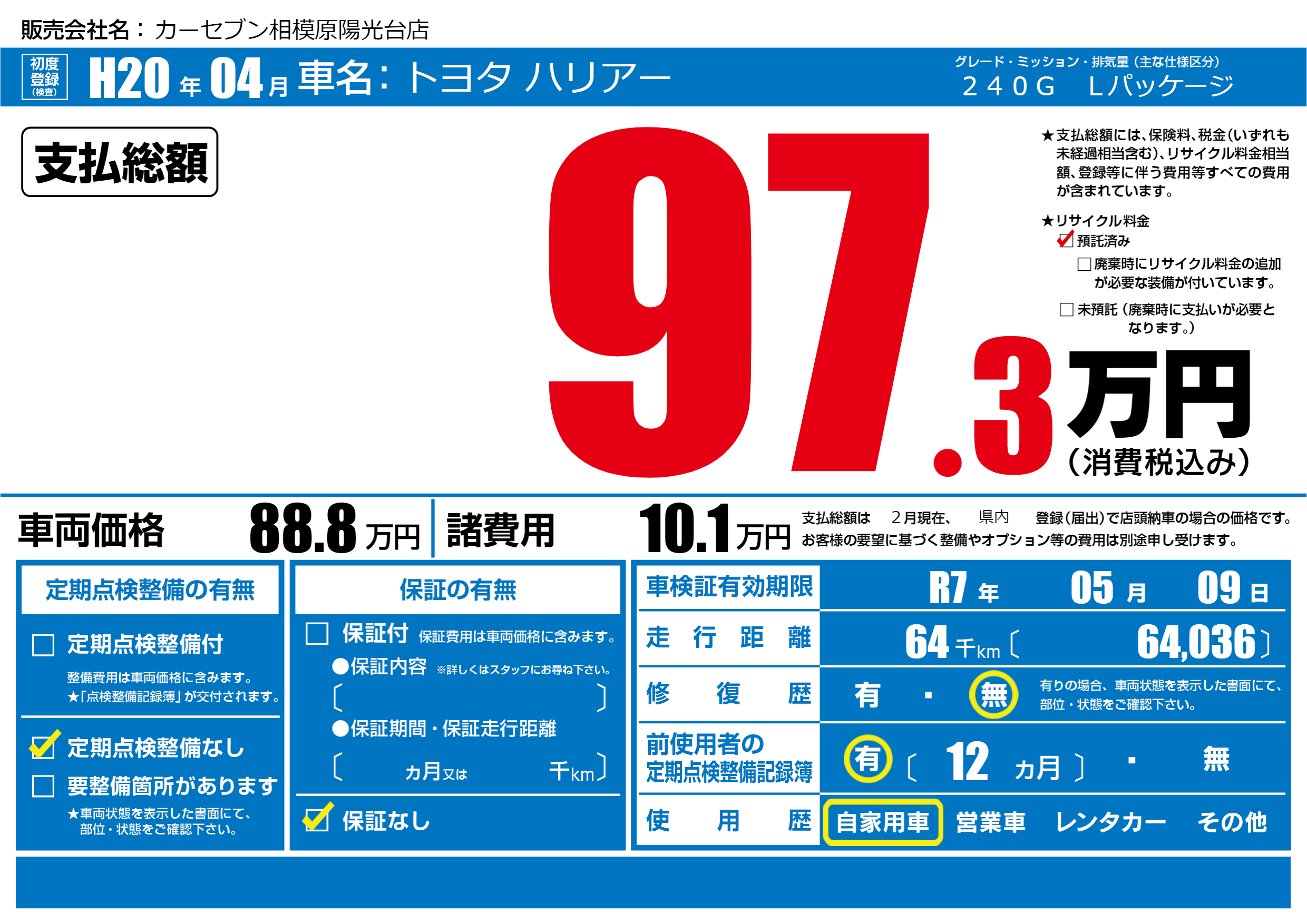 カーセブン相模原陽光台店の展示車