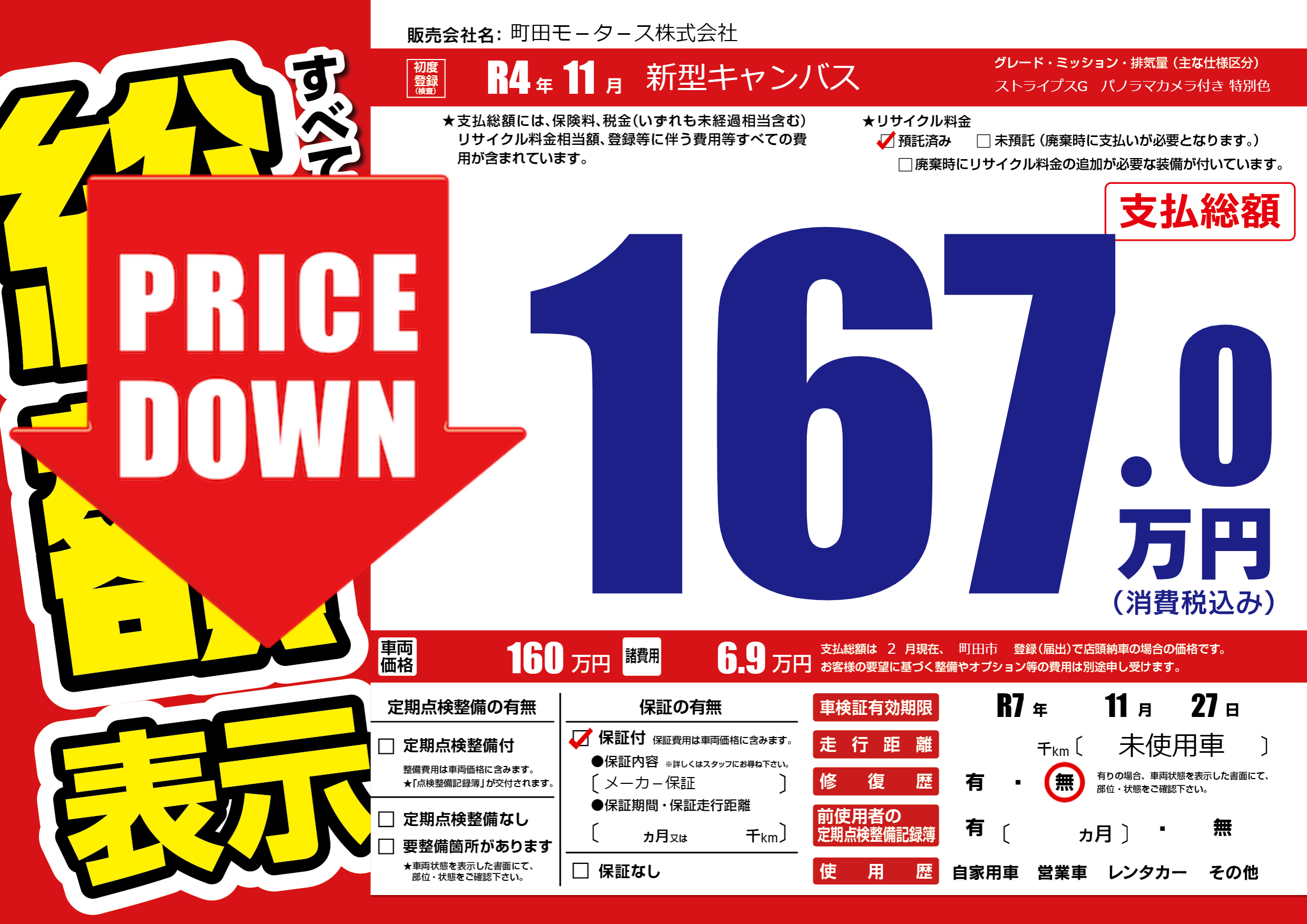 | 車名 | 新型キャンバス | グレード ミッション 排気量 |
