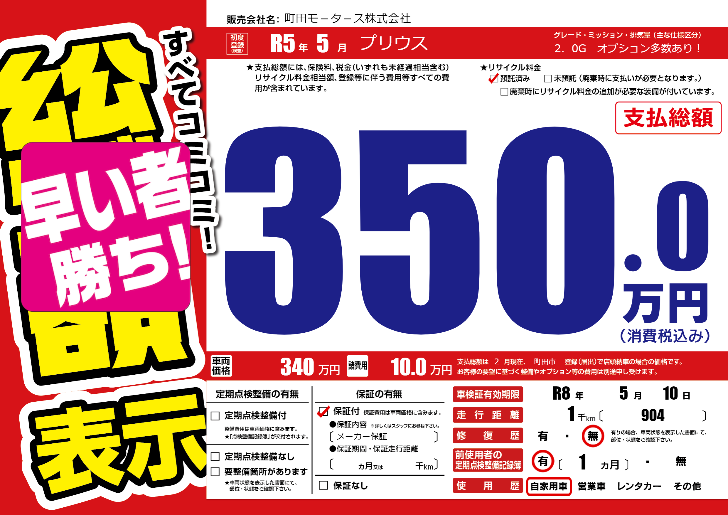 | 車名 | プリウス | グレード ミッション 排気量 |