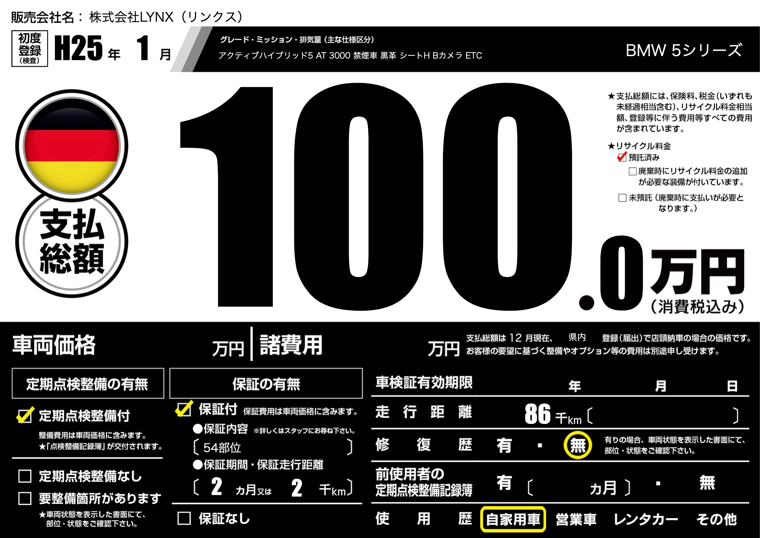 | リサイクル料金 預託済 |