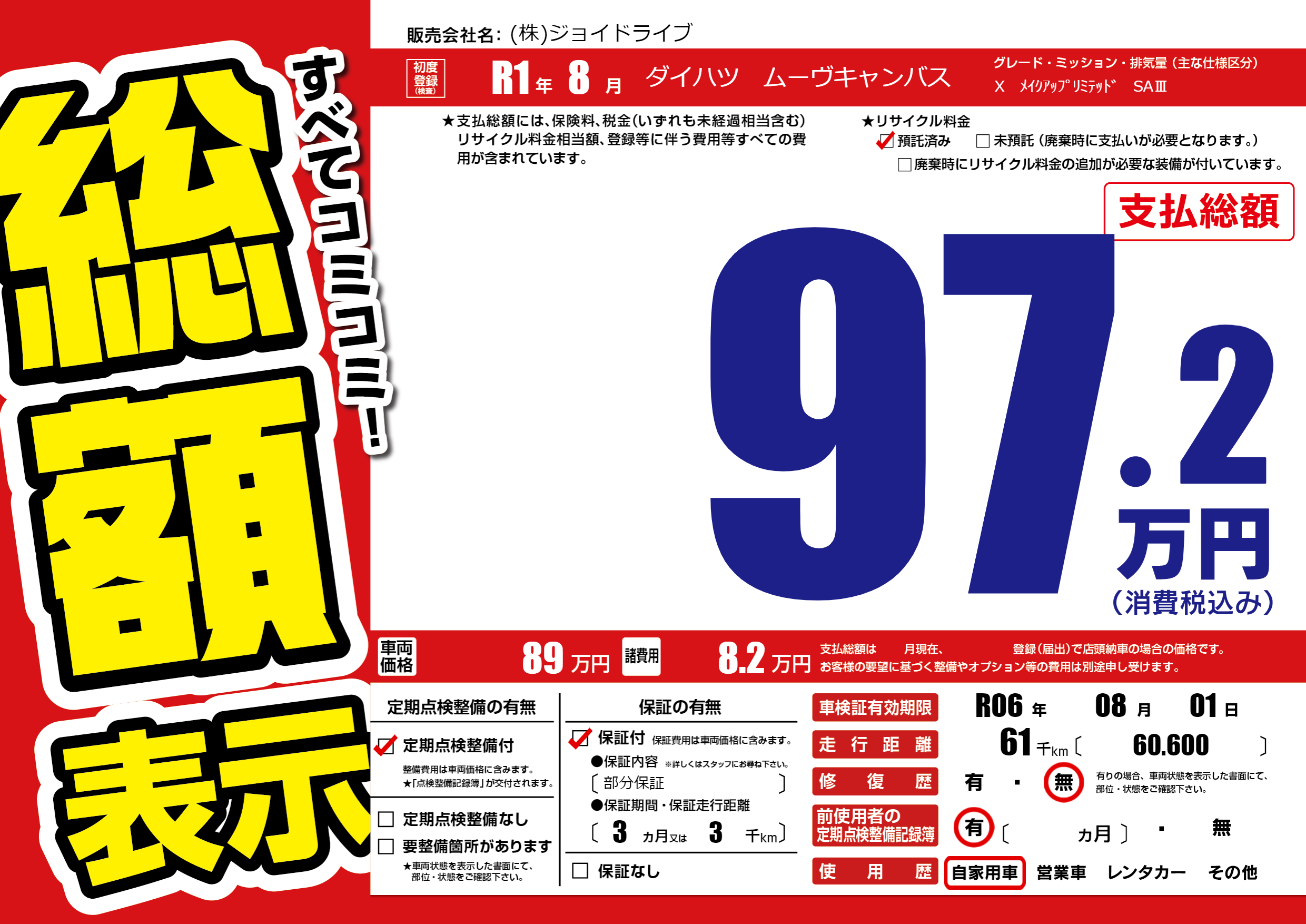 | 車検制限 | R06年 08月 01日 | ||