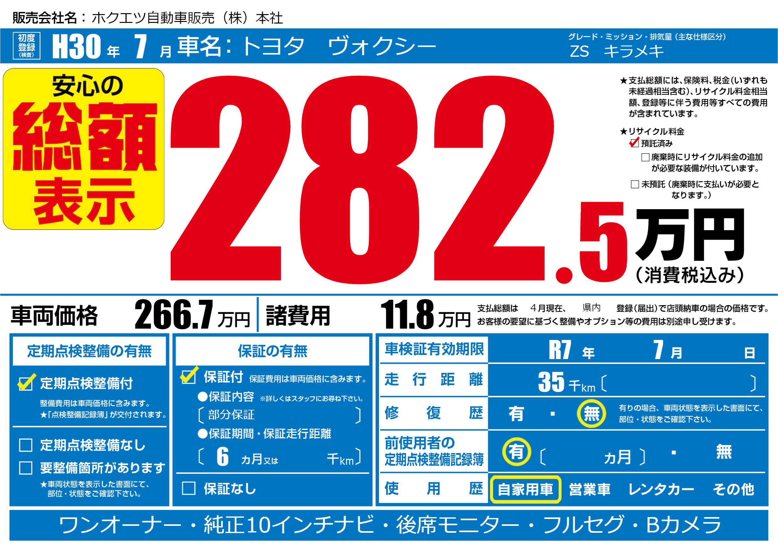 | 車名 | トヨタ ヴォクシー | グレード ミッション 排気量 |