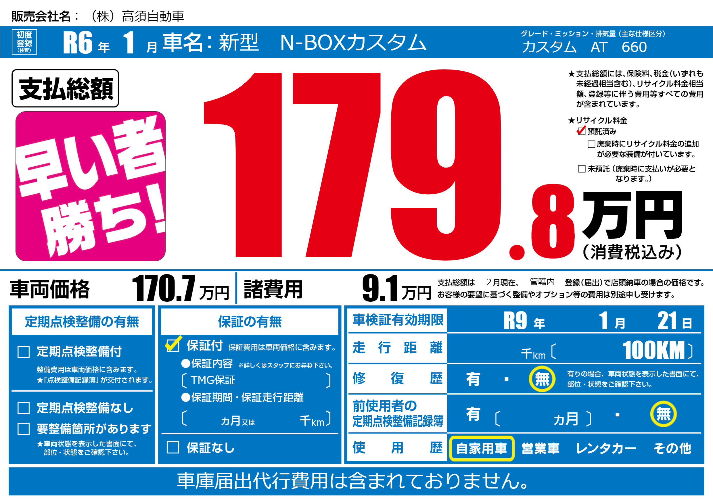 | 車名 | 新型 N-BOXカスタム | グレード ミッション 排気量 |