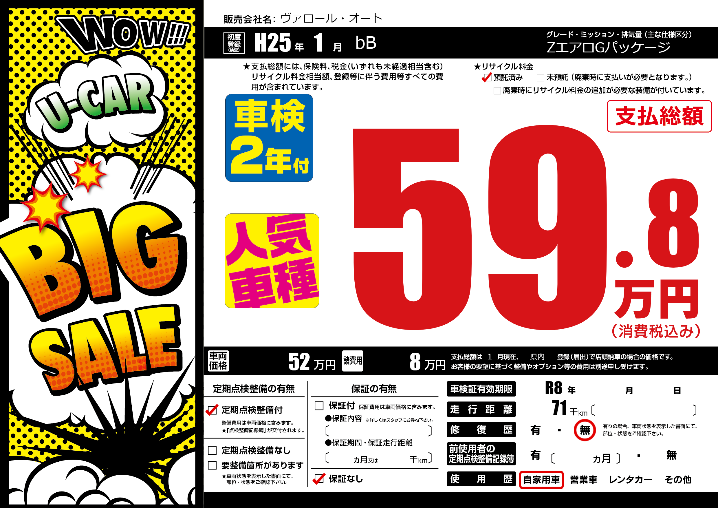 | 車検制限 | R8年 - 月 - 日 | ||