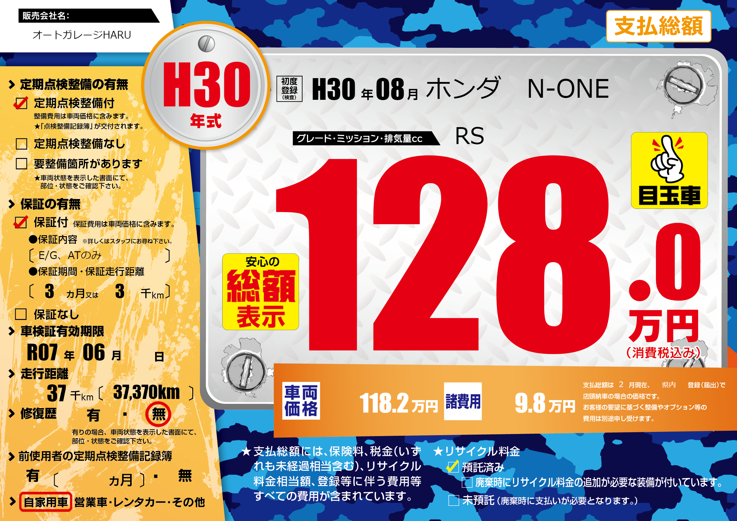 なし | 車検制限 | R07年06月---月 |