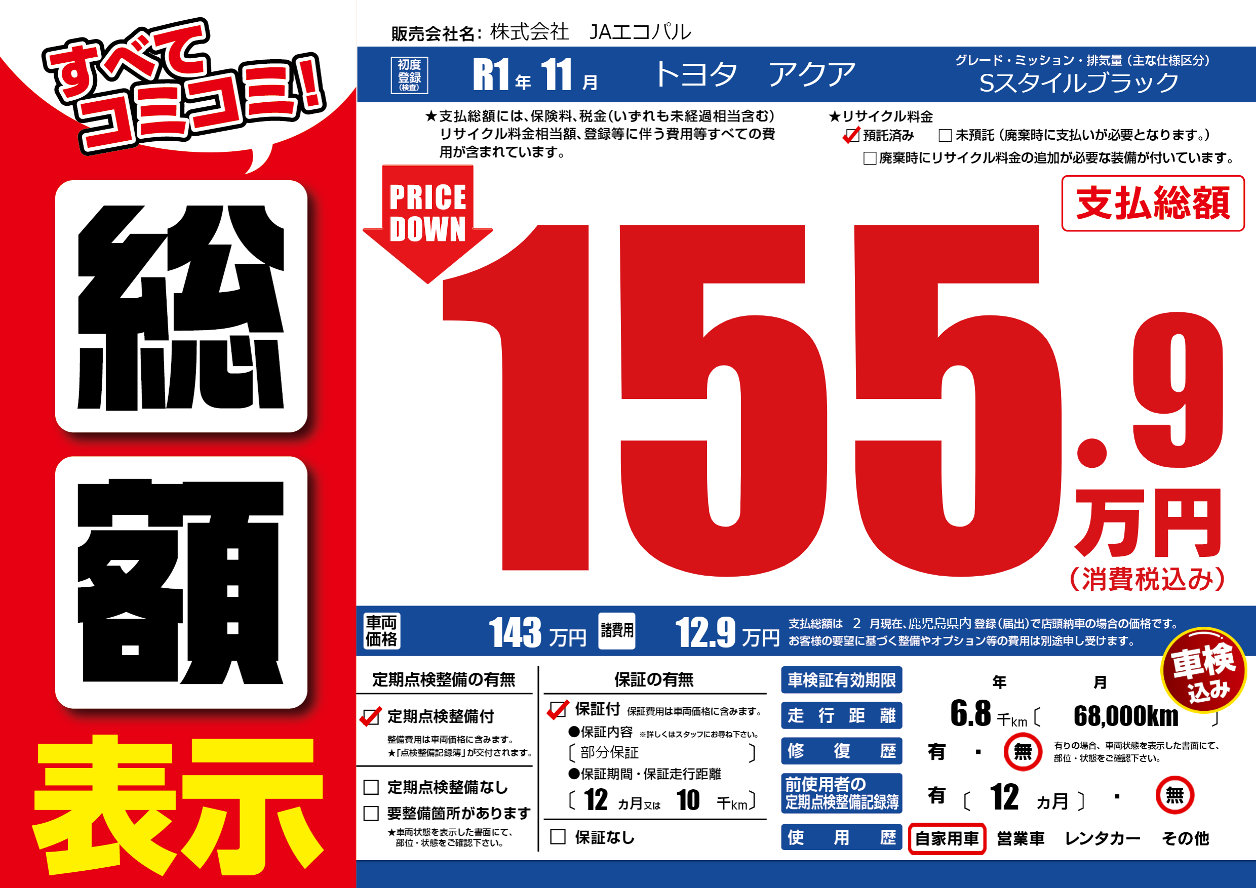 保証付き 保証内容(部分保証) 12ヶ月または(10)千kmまで |