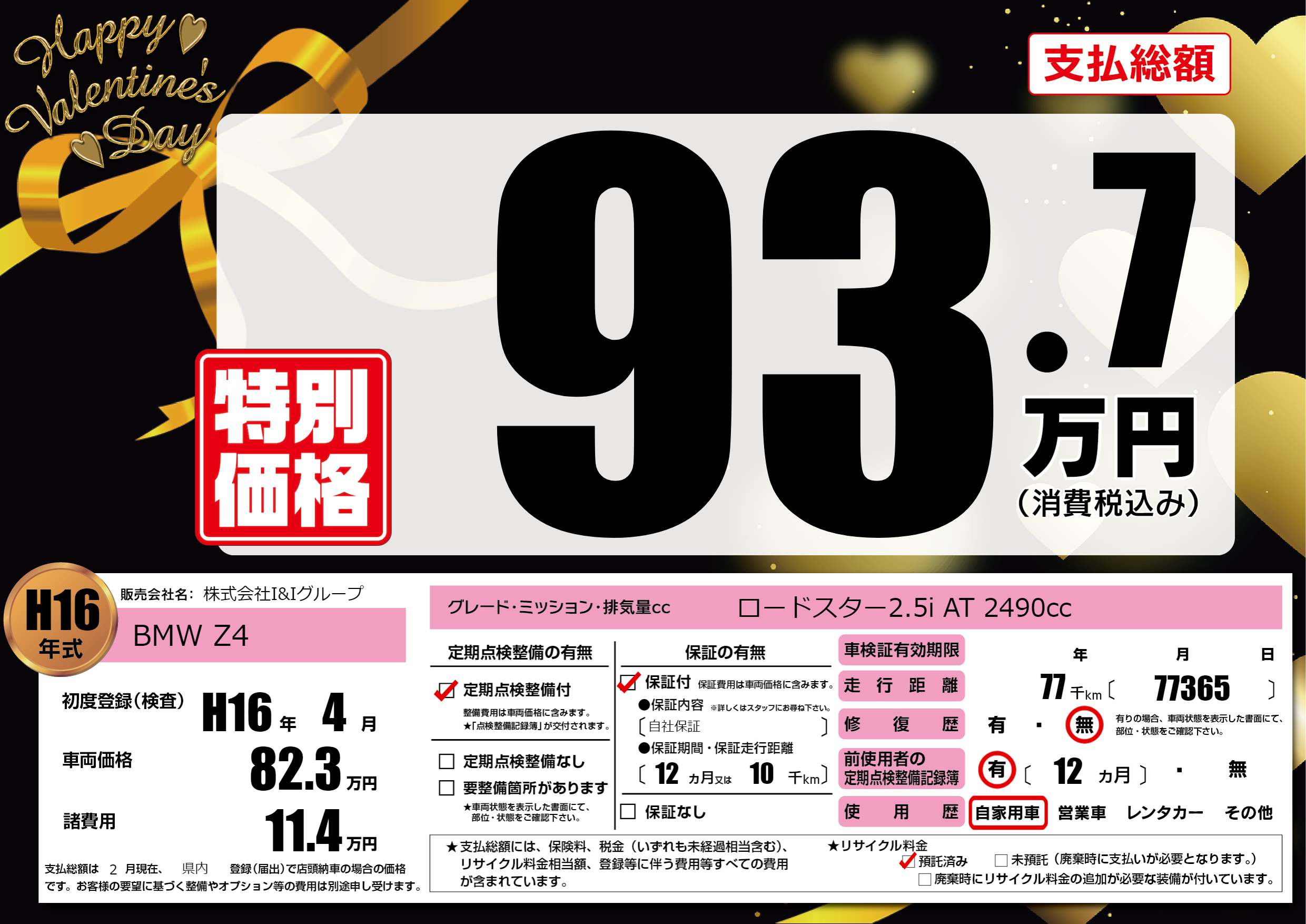 | 車名 | BMW Z4 | グレード ミッション 排気量 |