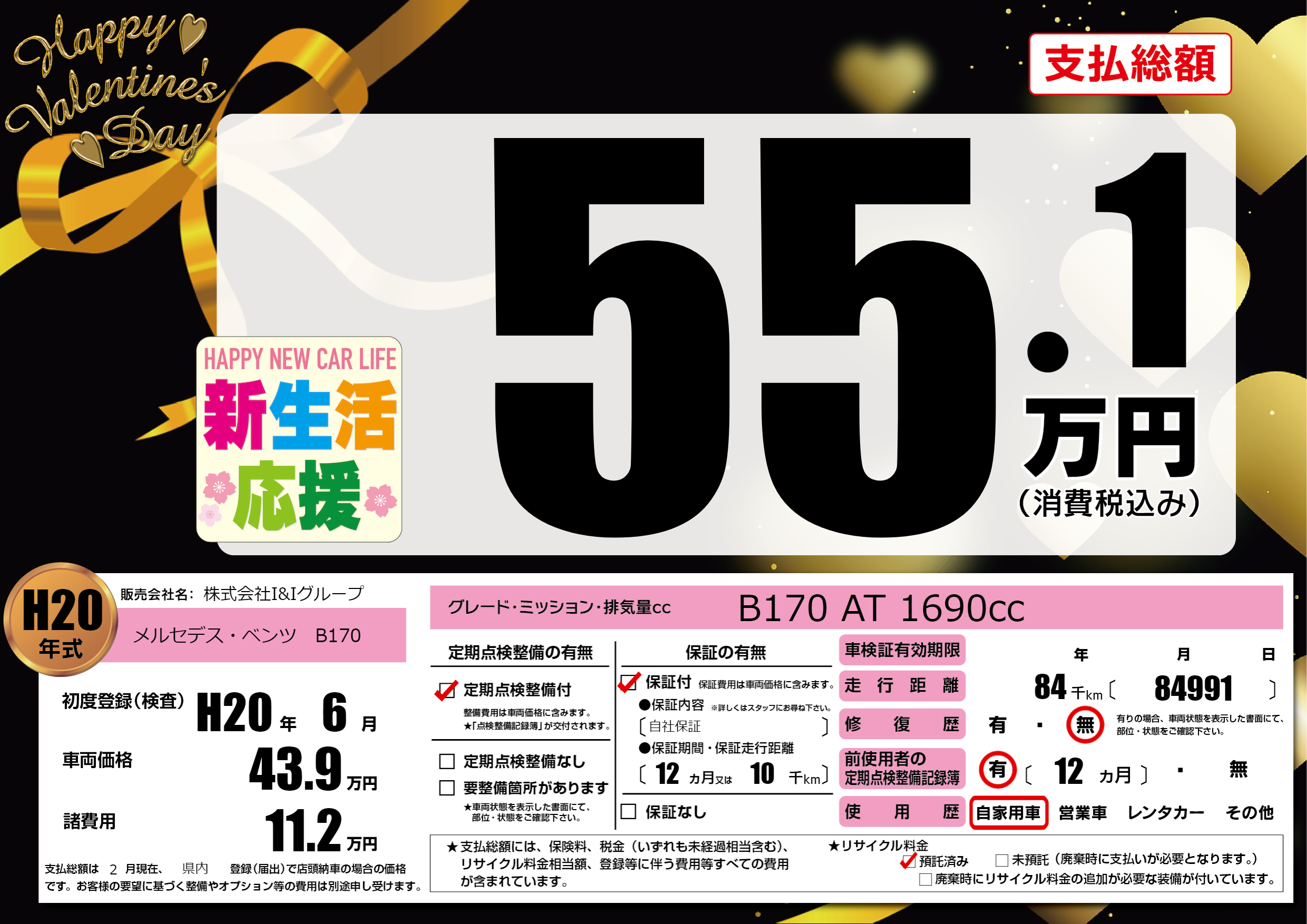 | 車名 | メルセデス・ベンツ B170 | グレード ミッション 排気量 |