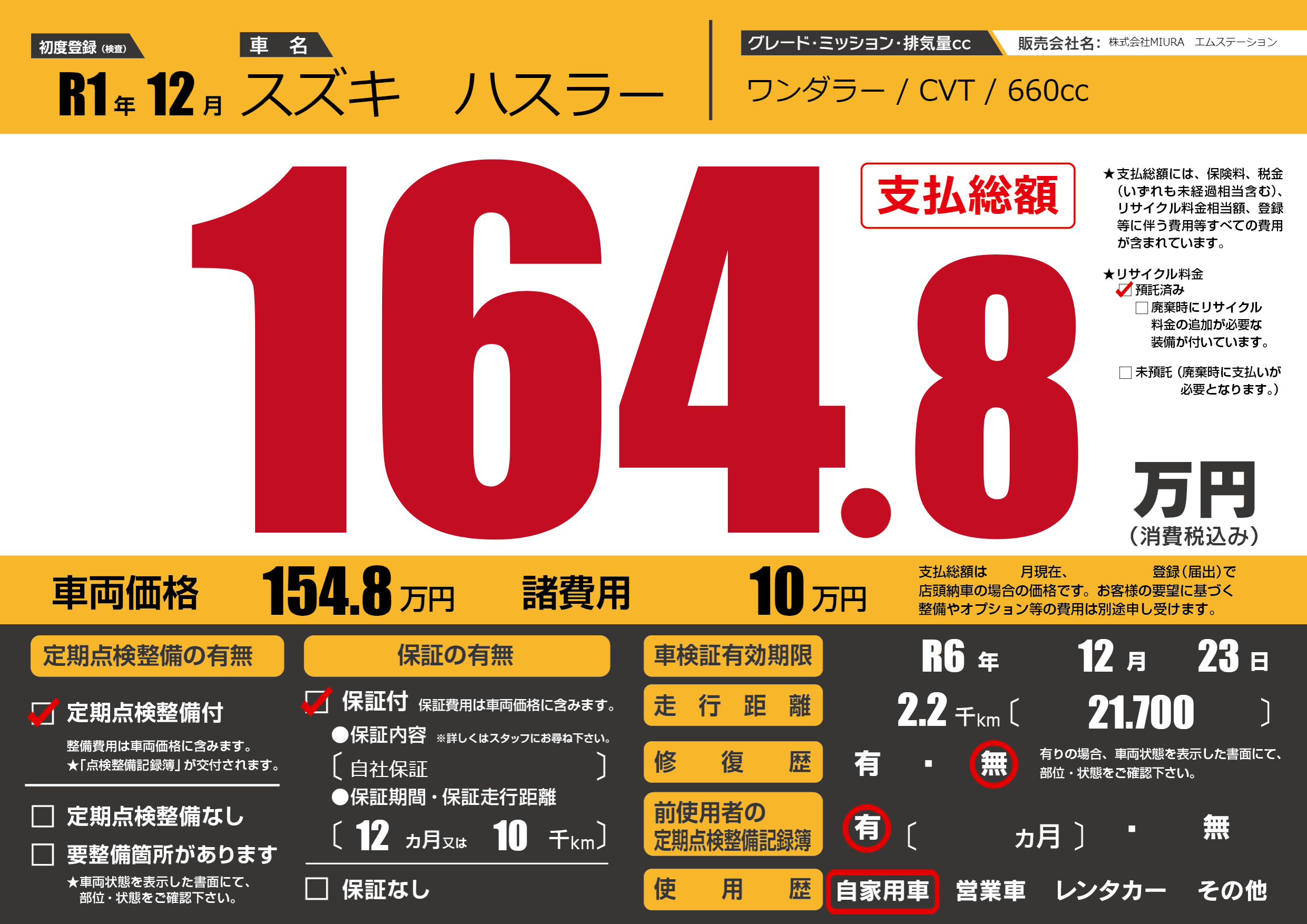 | 車検制限 | R6年 12月 23日 | ||