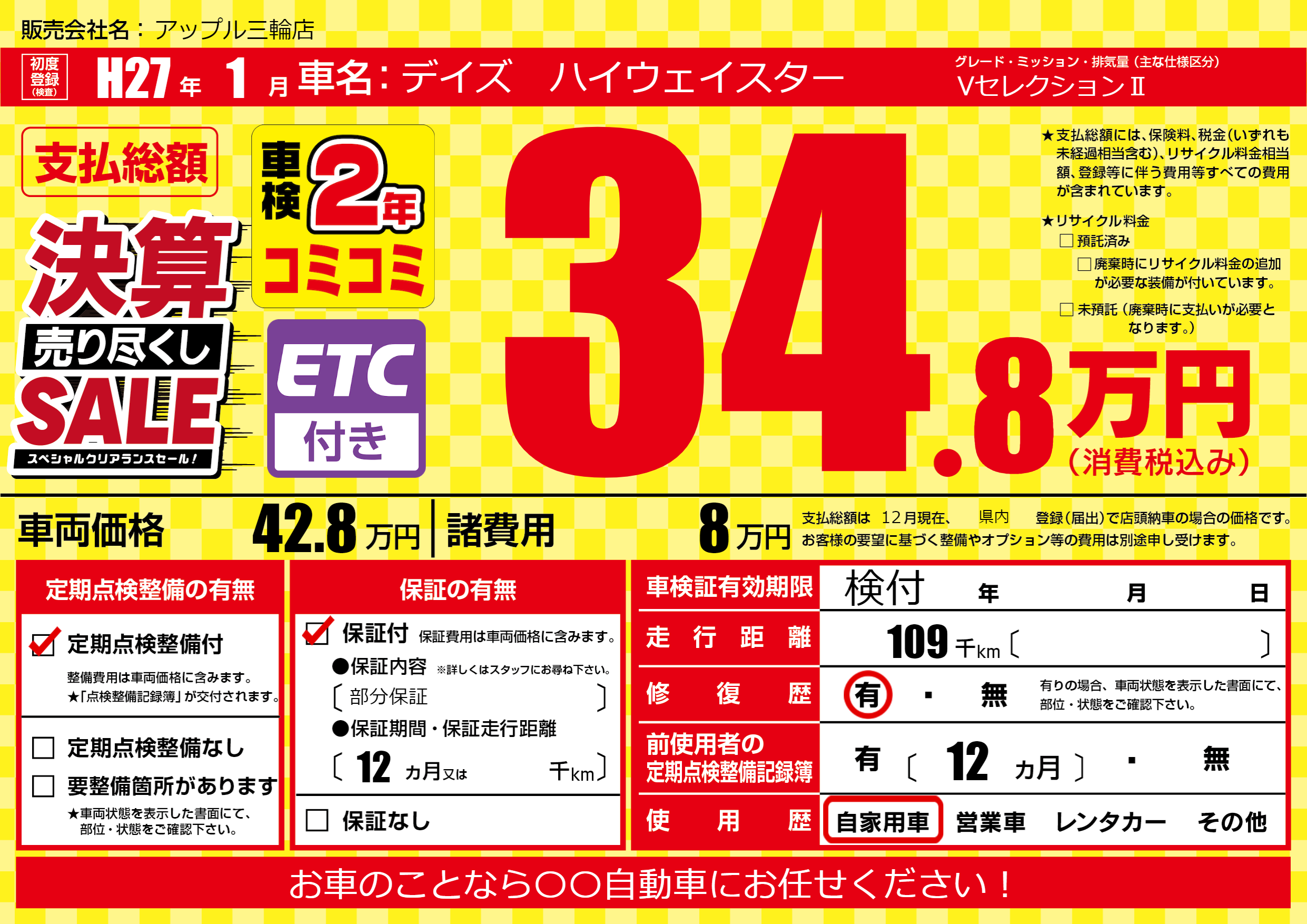 | 定期点検整備 | 定期点検整備あり | ||