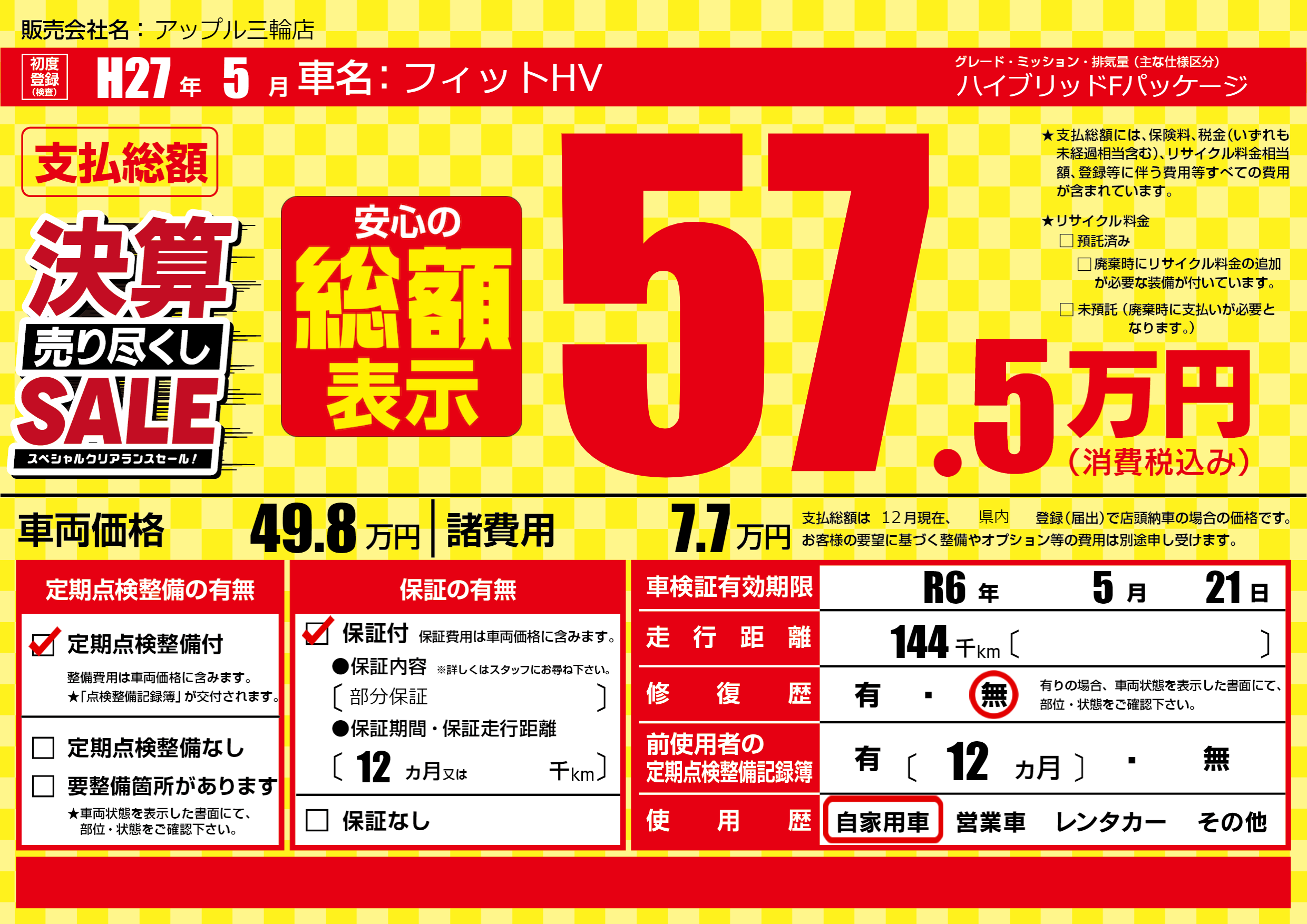 なし | 車検制限 | R6年5月21月 |