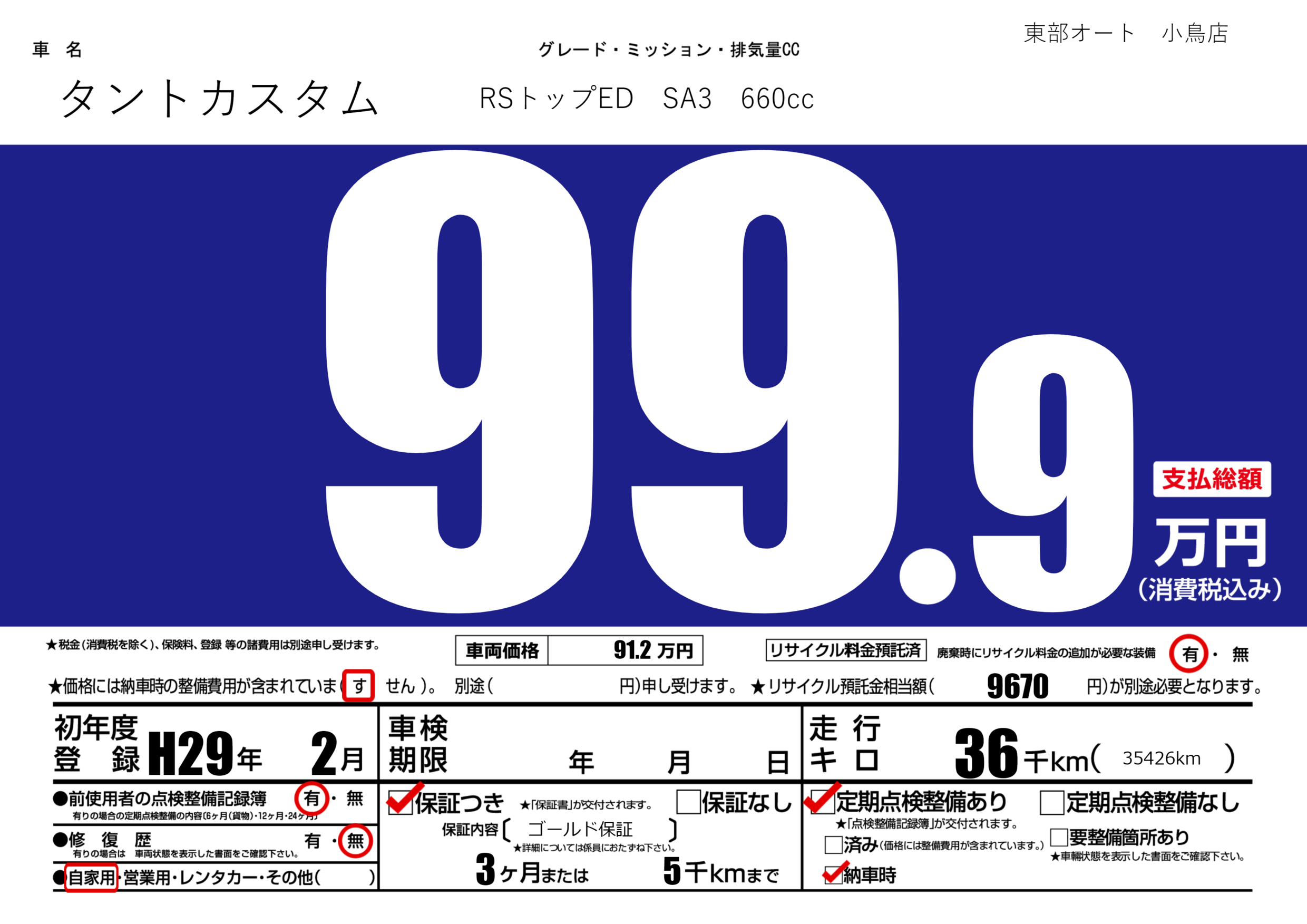 保証内容( ゴールド保証) 3ヶ月または5千km