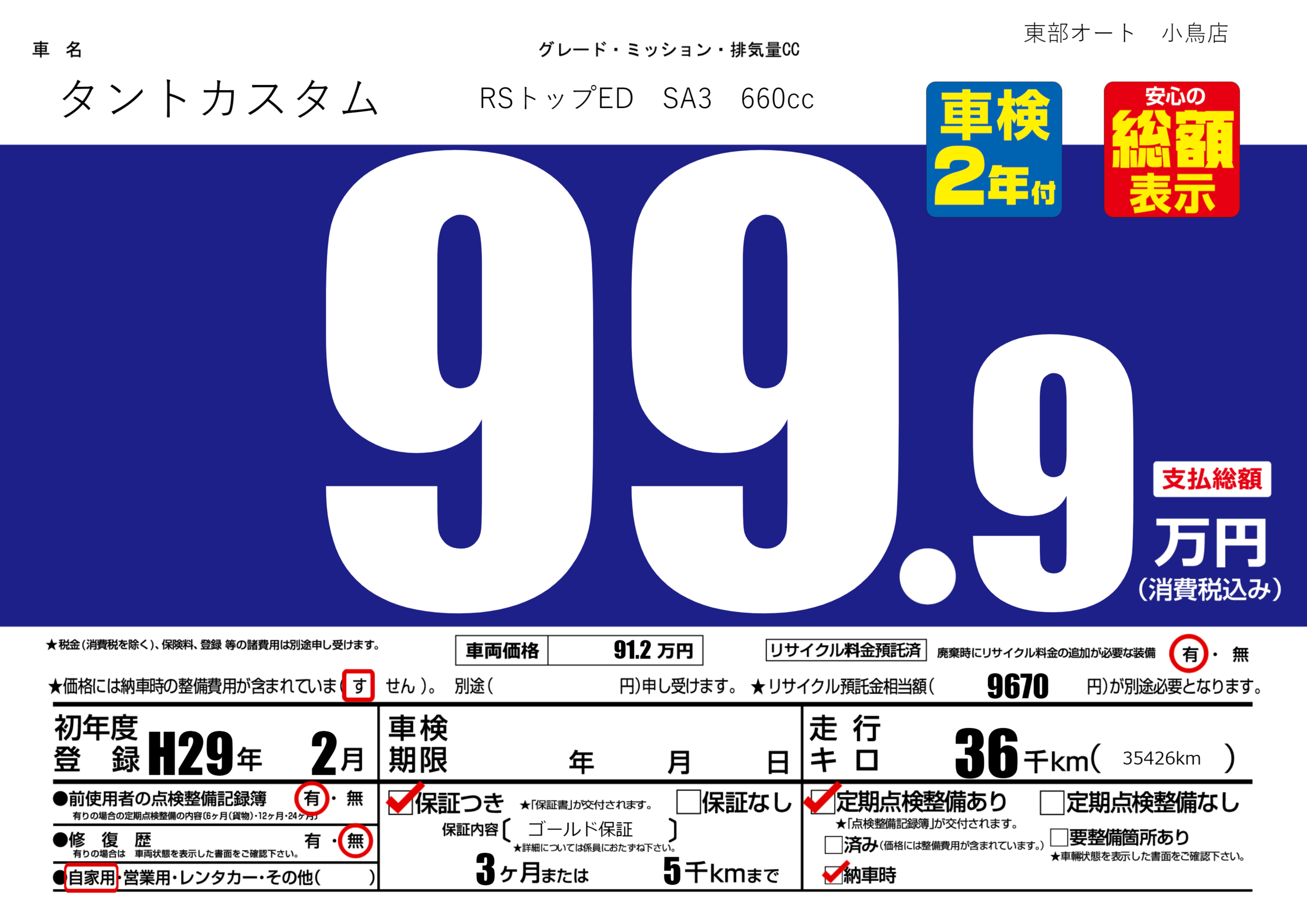 保証付き 保証内容( ゴールド保証) 3ヶ月または5千km |