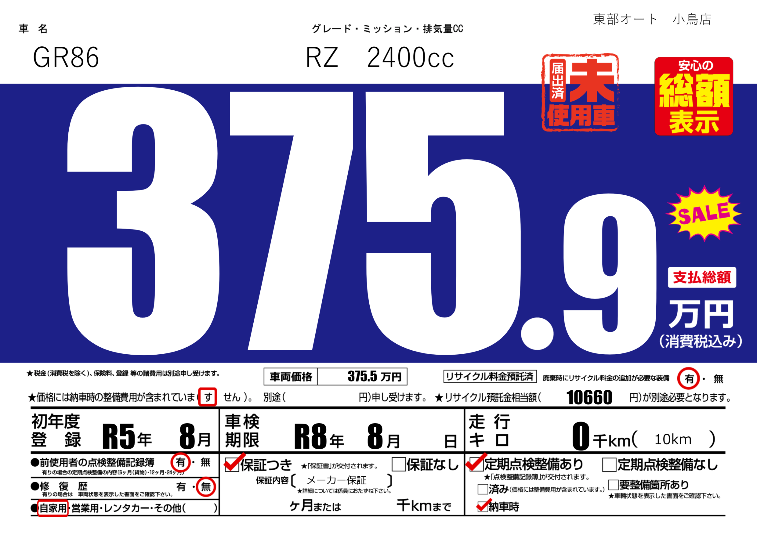 | 車名 | GR86 | グレード ミッション 排気量 |
