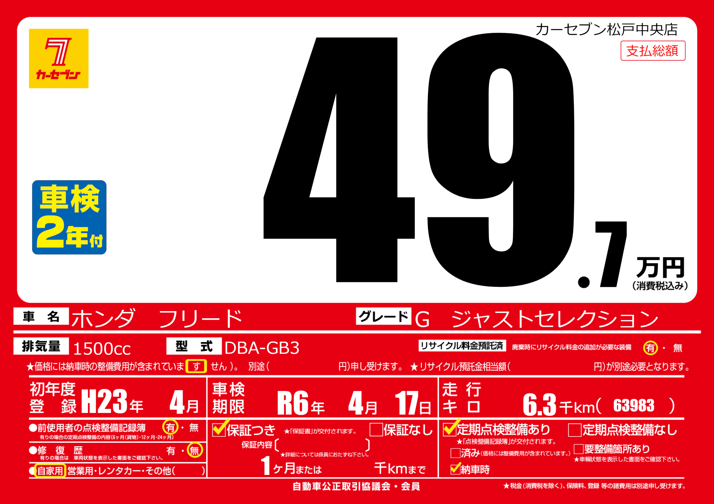 あり | 車検制限 | R6年4月17月 |