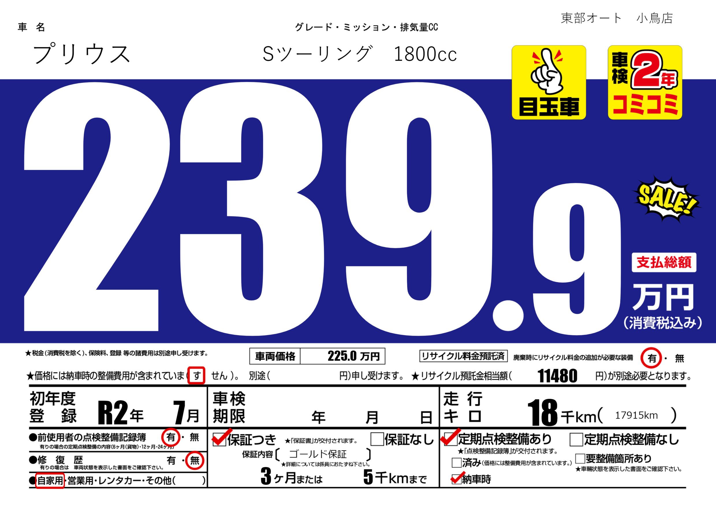 保証付き 保証内容( ゴールド保証) 3ヶ月または5千km |