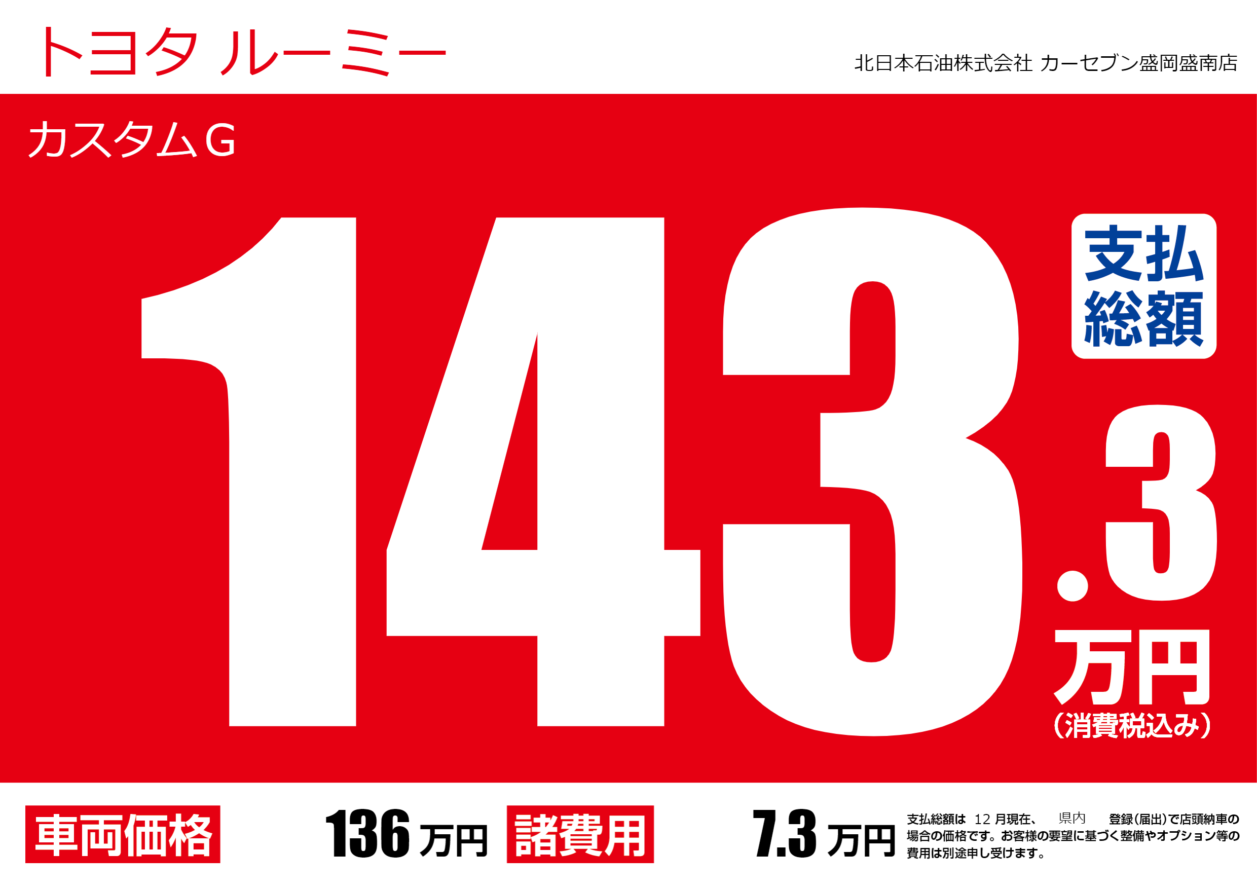 | 車名 | トヨタ ルーミー | グレード ミッション 排気量 |