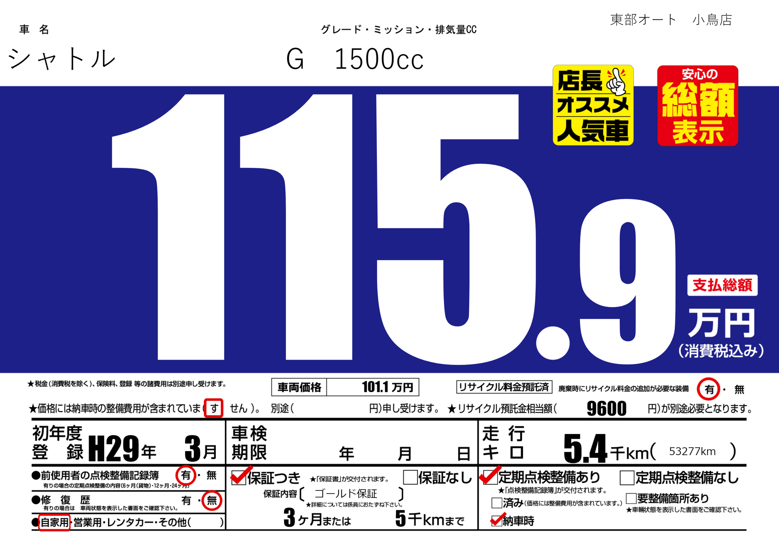 保証付き 保証内容( ゴールド保証) 3ヶ月または5千km |