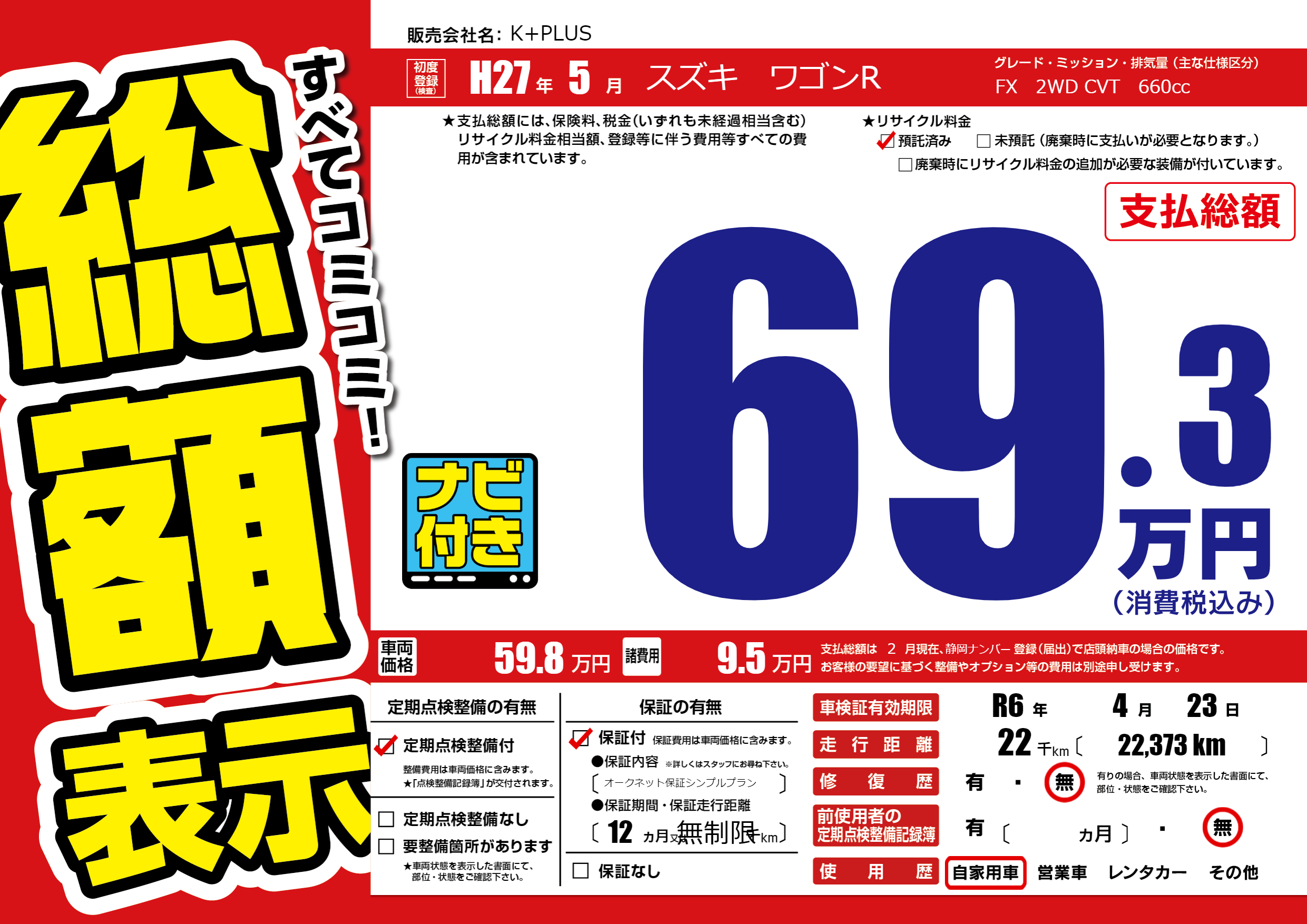 なし | 車検制限 | R6年4月23月 |