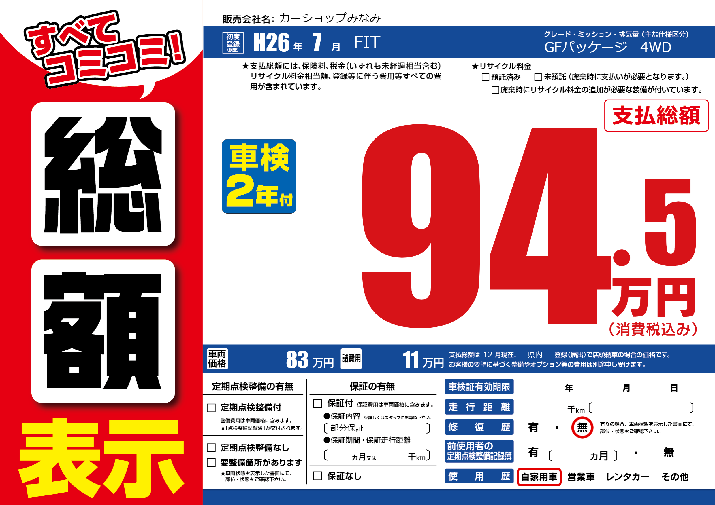 | 走行キロ | - | 初年度登録 | H26年7月 |