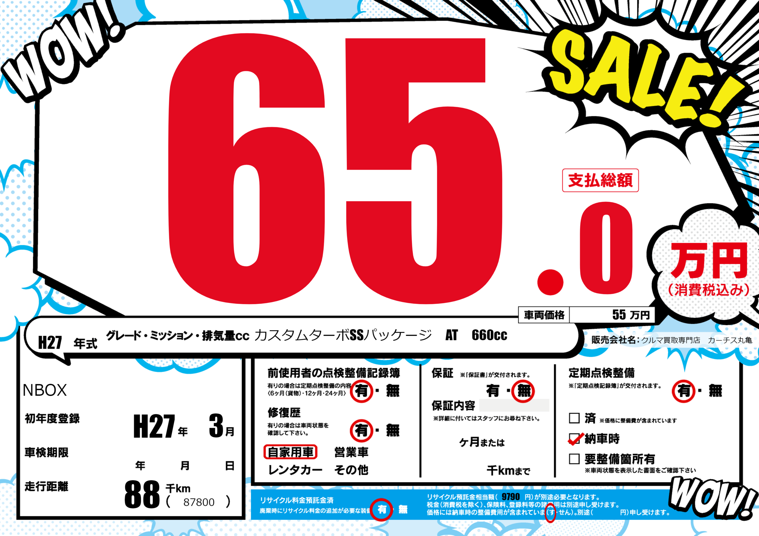 | 走行キロ | 8.8万km | 初年度登録 | H27年3月 |