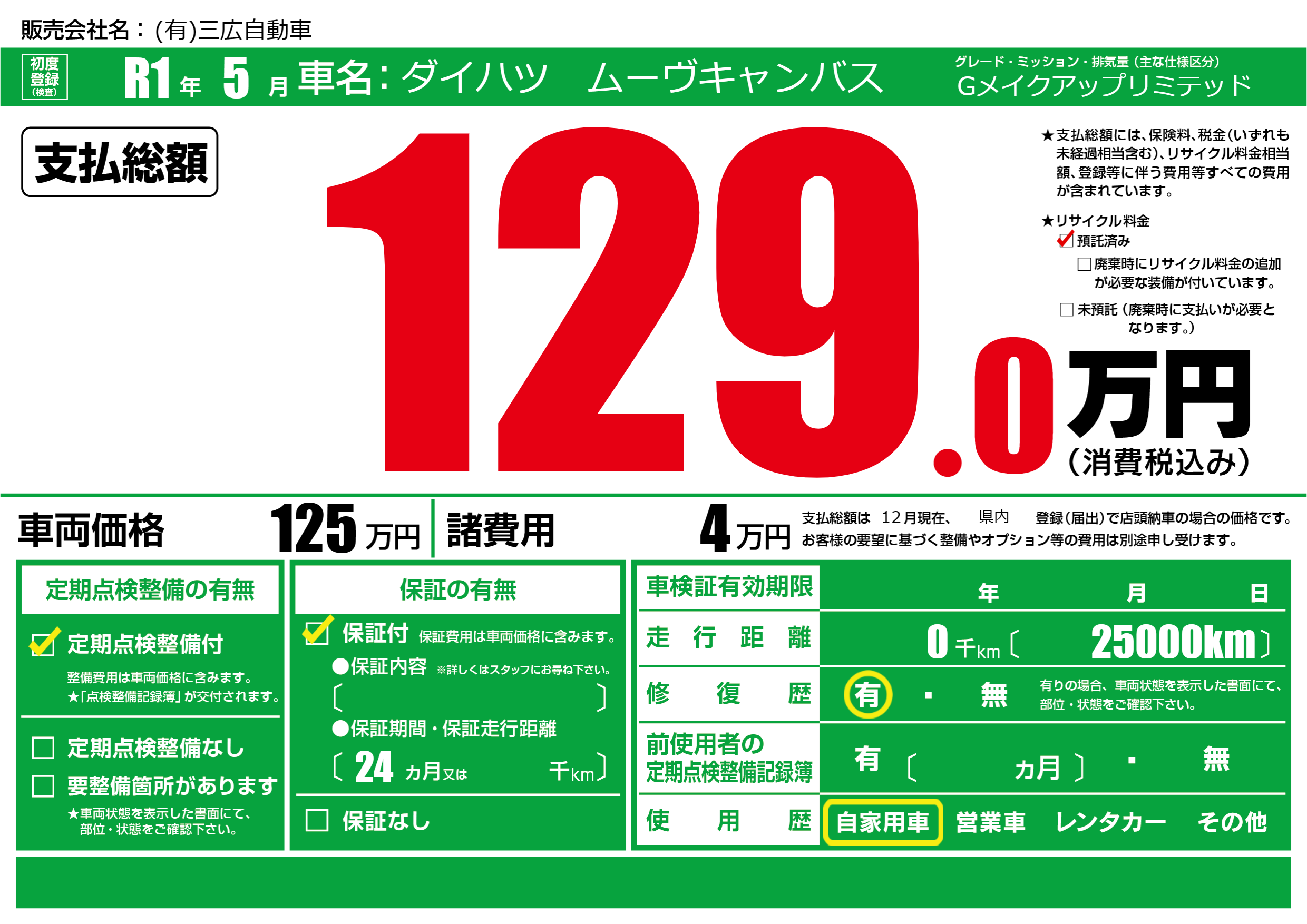| 走行キロ | - | 初年度登録 | R1年5月 |