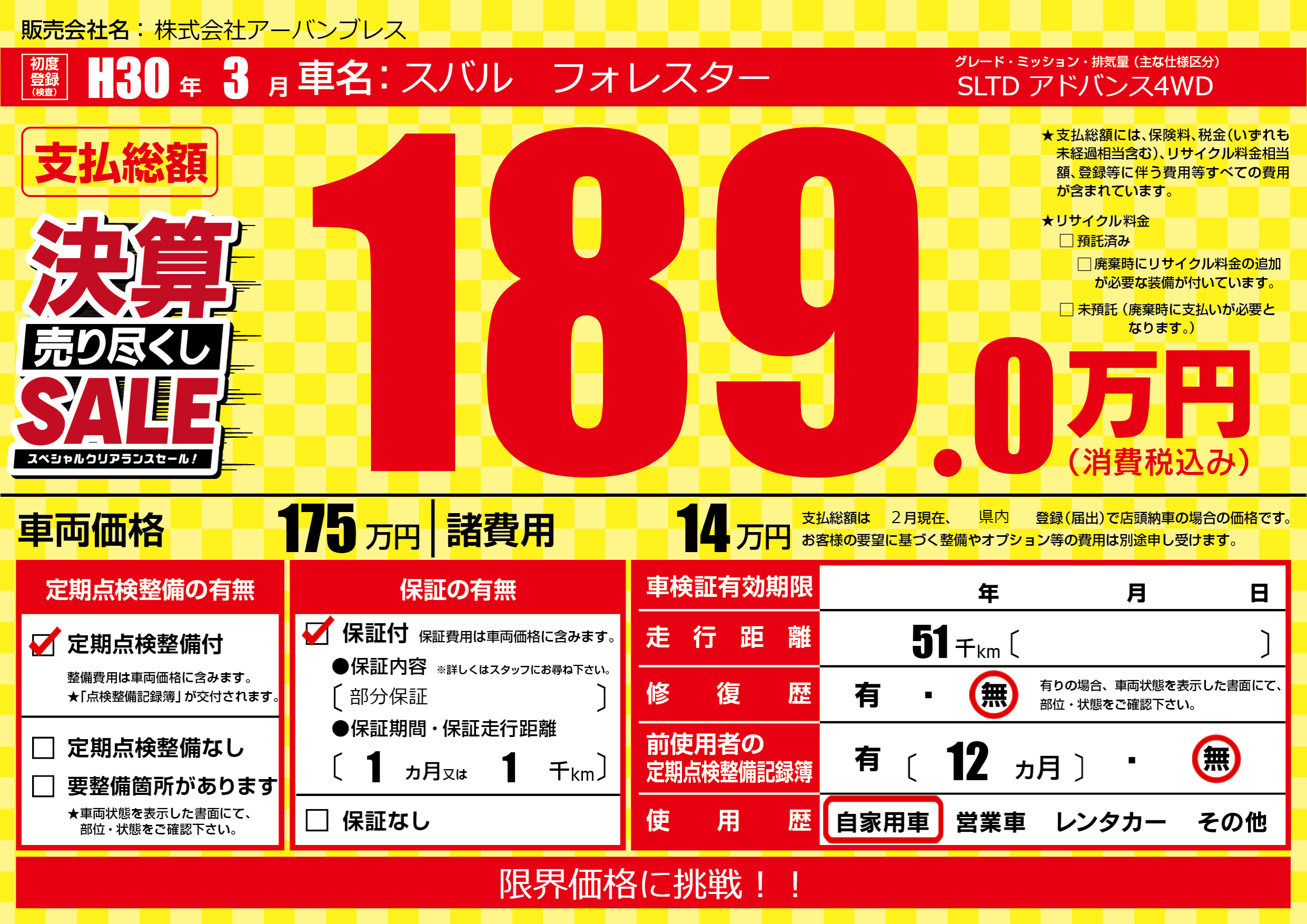 | 車検制限 | - 年 - 月 - 日 | ||