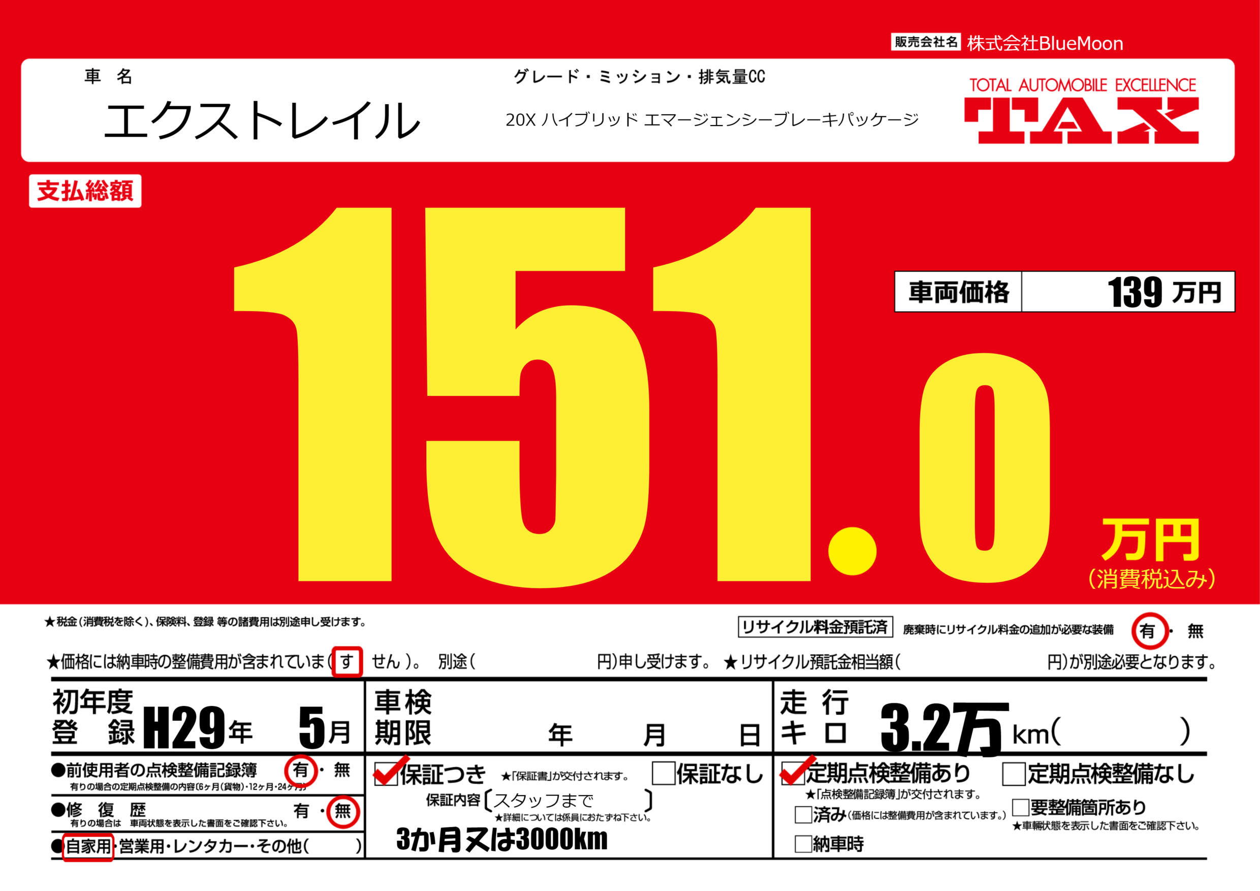 | 車名 | エクストレイル | グレード ミッション 排気量 |