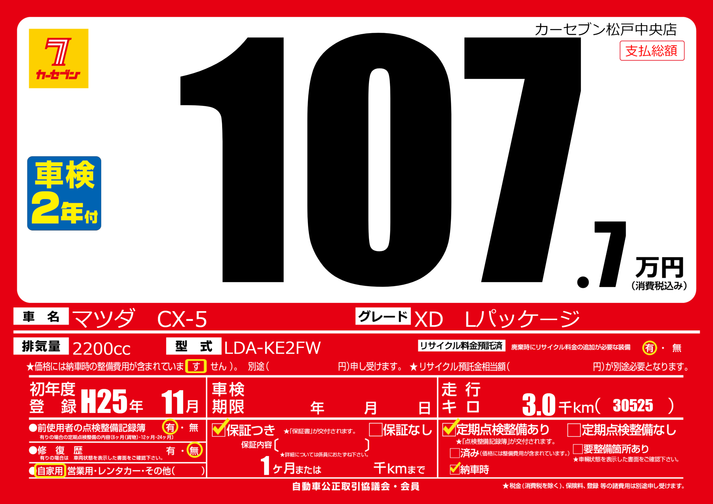 | 車名 | マツダ CX-5 | グレード ミッション 排気量 |
