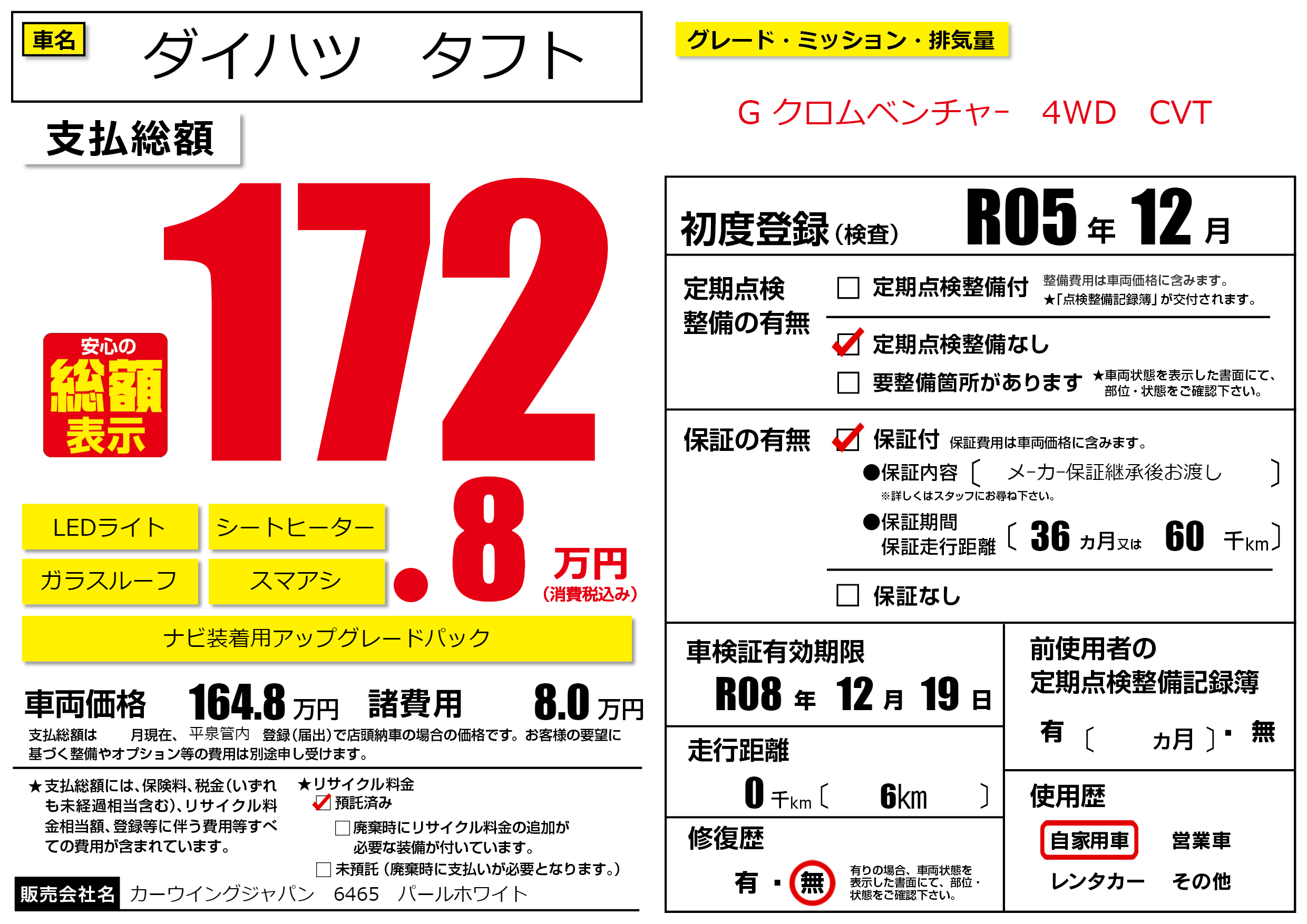 なし | 車検制限 | R08年12月19月 |