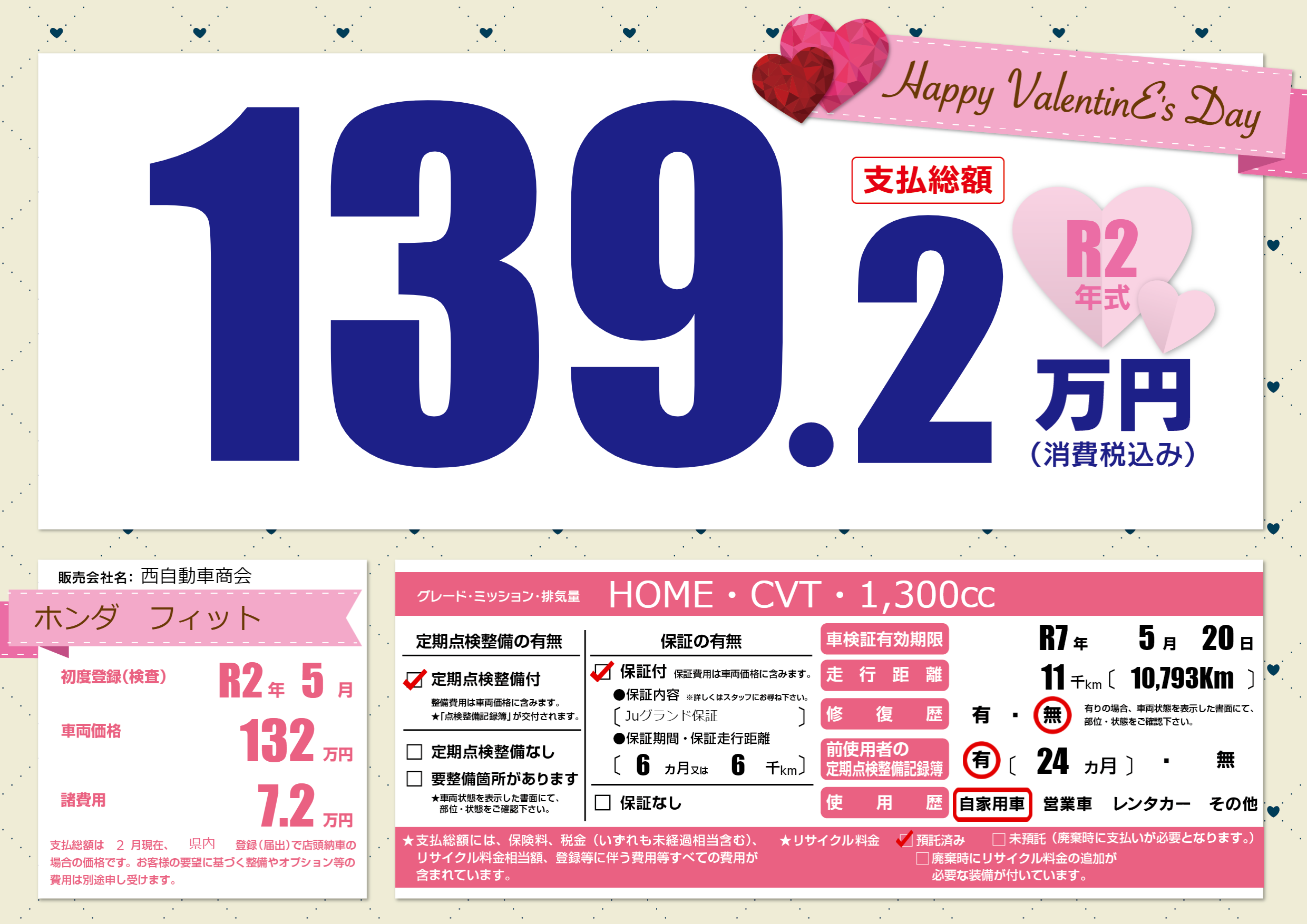 | 走行キロ | 1.1万km | 初年度登録 | R2年5月 |