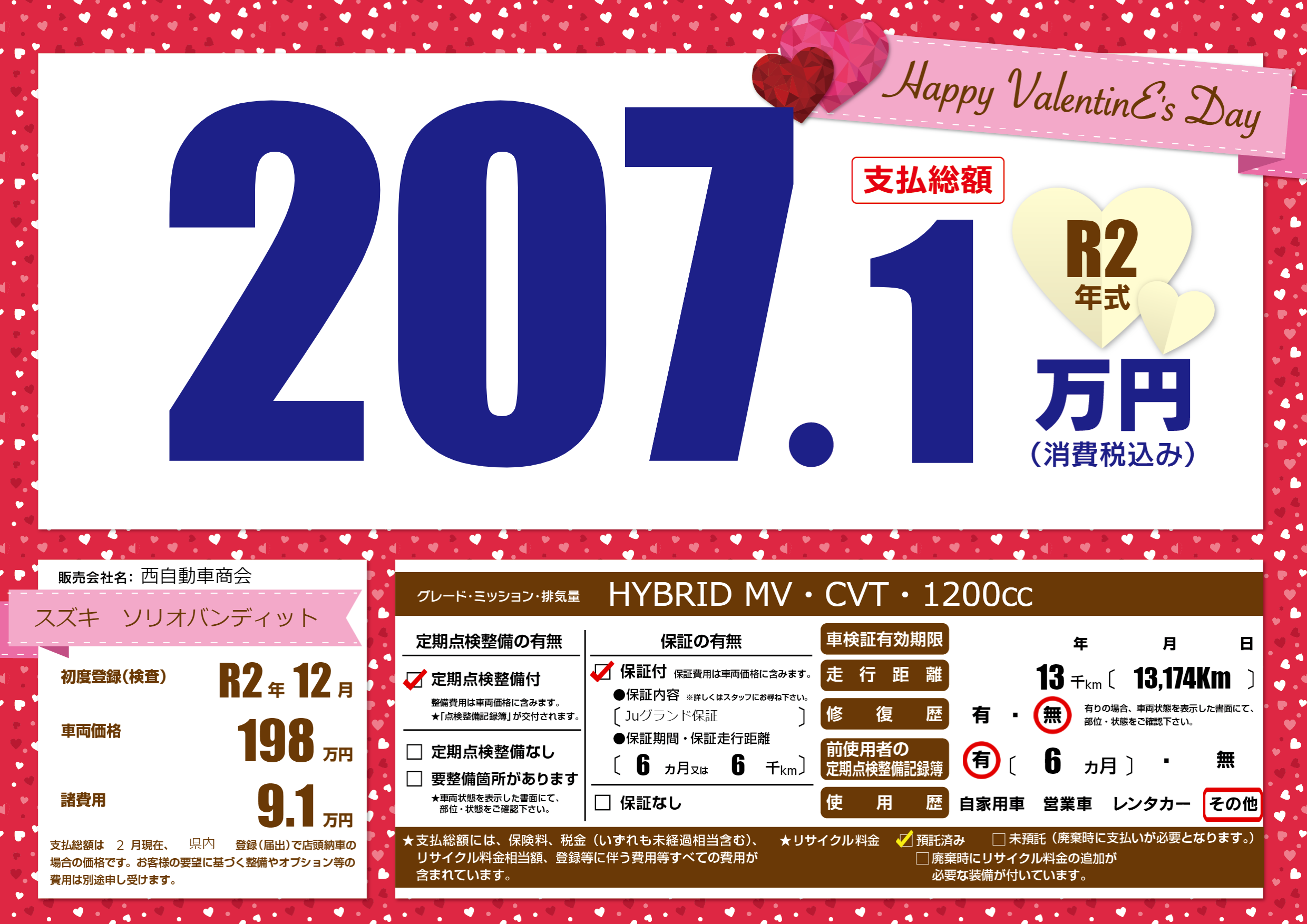 | 走行キロ | 1.3万km | 初年度登録 | R2年12月 |