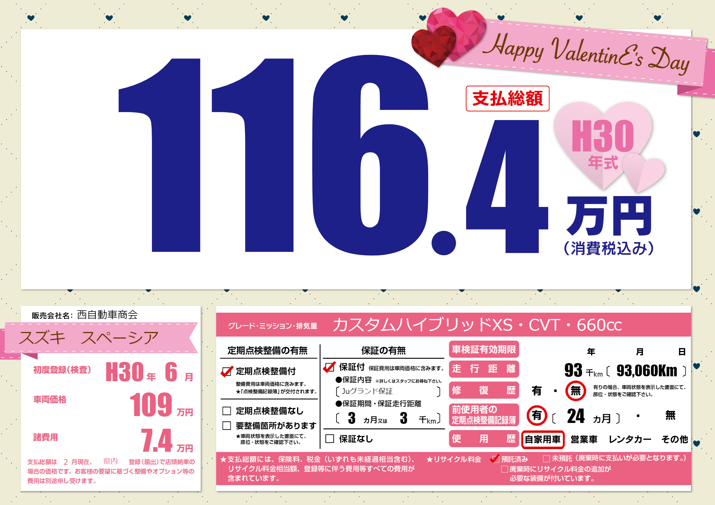 | 走行キロ | 9.3万km | 初年度登録 | H30年6月 |
