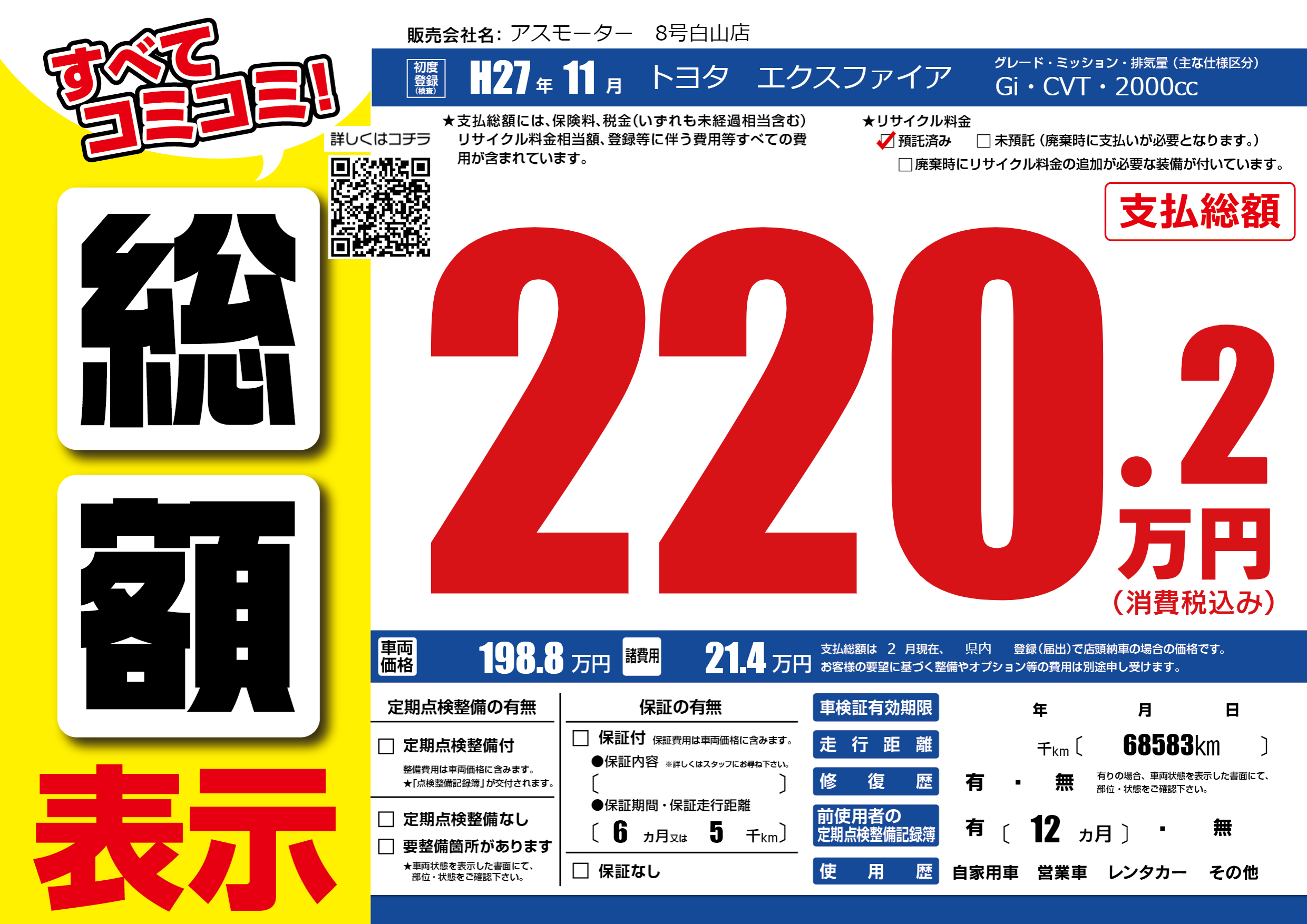| 走行キロ | - | 初年度登録 | H27年11月 |