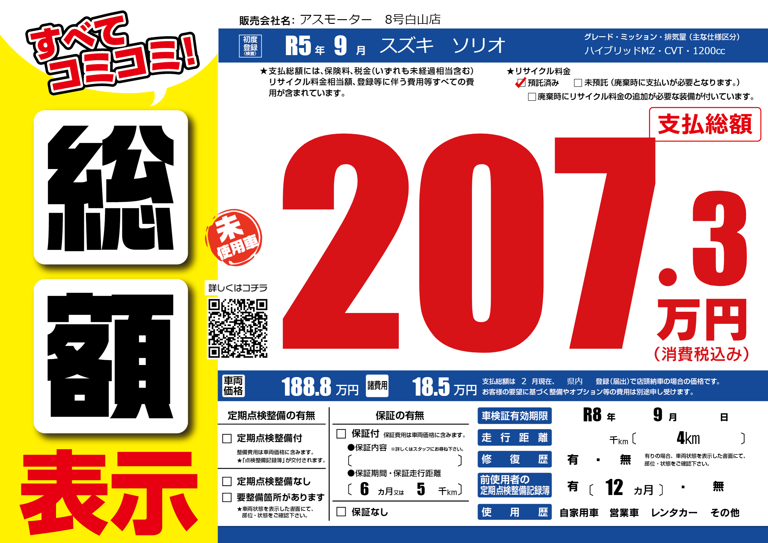 | 走行キロ | - | 初年度登録 | R5年9月 |