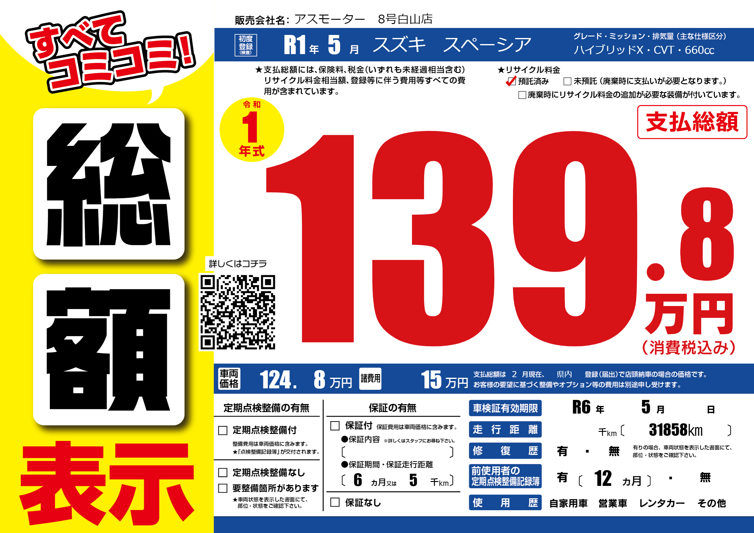 | 車名 | スズキ スペーシア | グレード ミッション 排気量 |