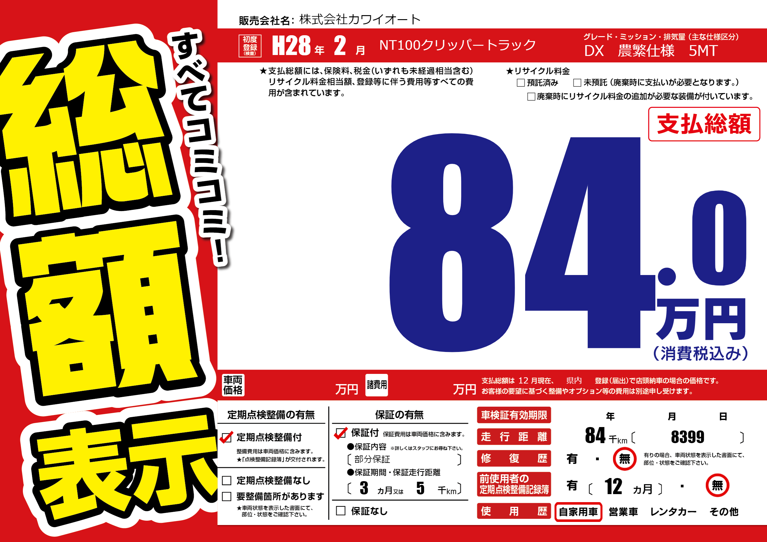 | 車名 | NT100クリッパートラック | グレード ミッション 排気量 |