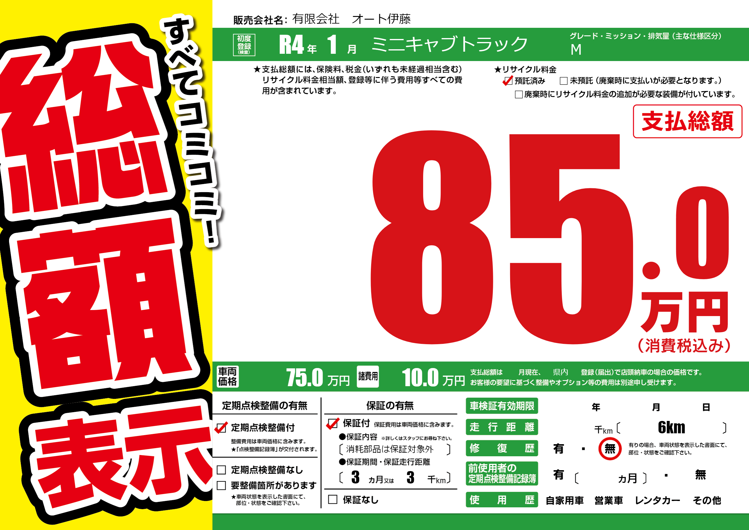 保証付き 保証内容(消耗部品は保証対象外) 3ヶ月または(3)千kmまで |