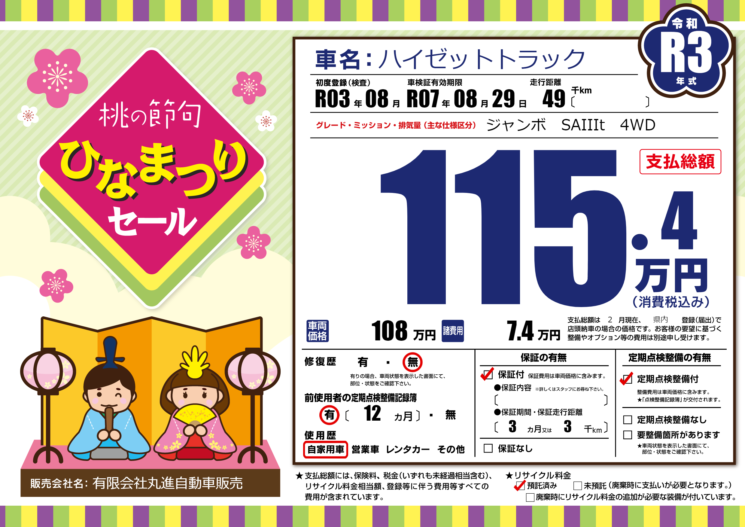 | 車名 | ハイゼットトラック | グレード ミッション 排気量 |